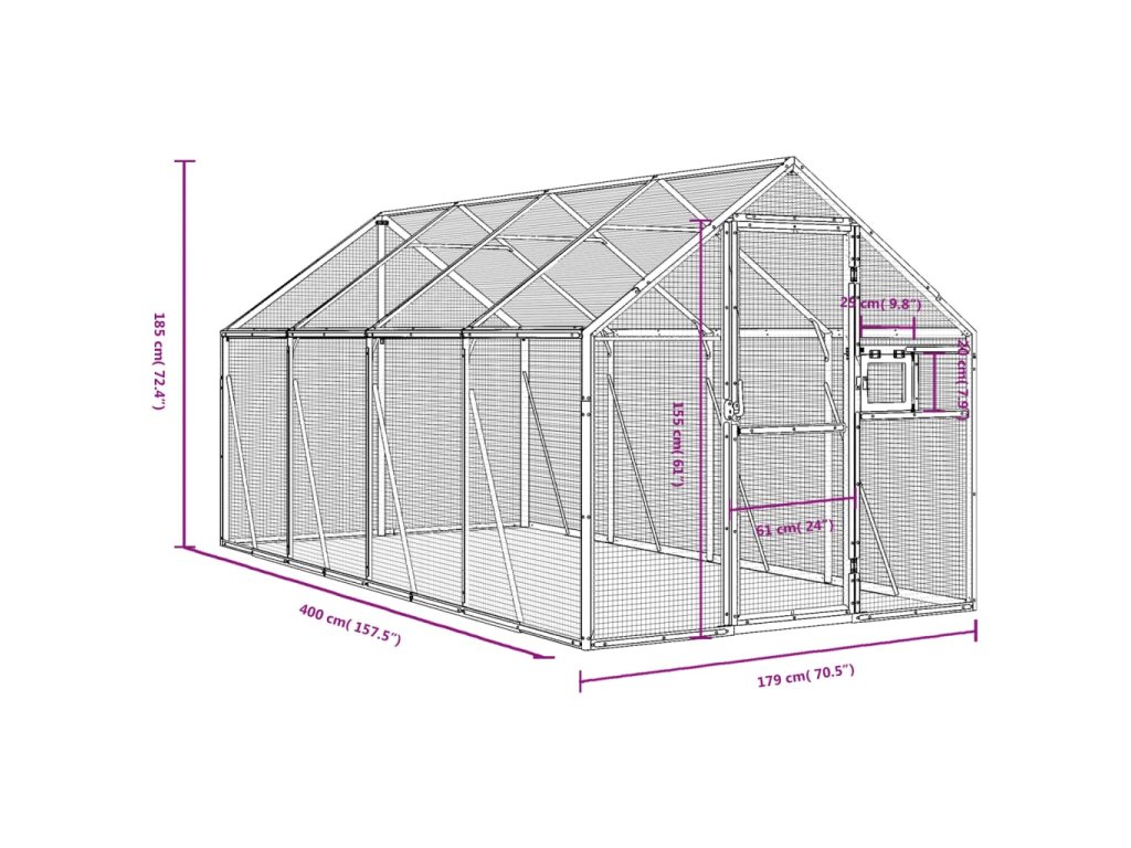 - Odolný materiál: Hliníkový kov je lehký a pevný. Je odolný proti korozi díky samoochranné oxidové vrstvě. Tato ptačí voliéra má robustní hliníkovou konstrukci a je vyrobena tak, aby velmi dlouho vydržela.