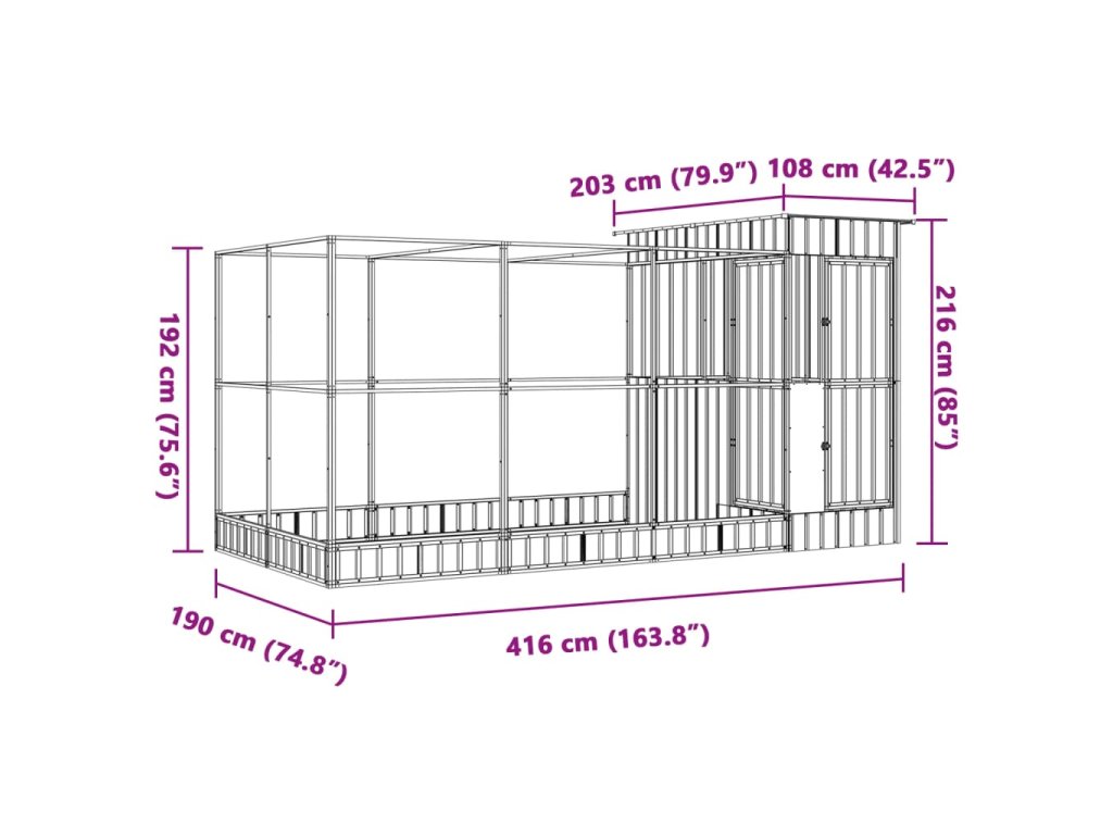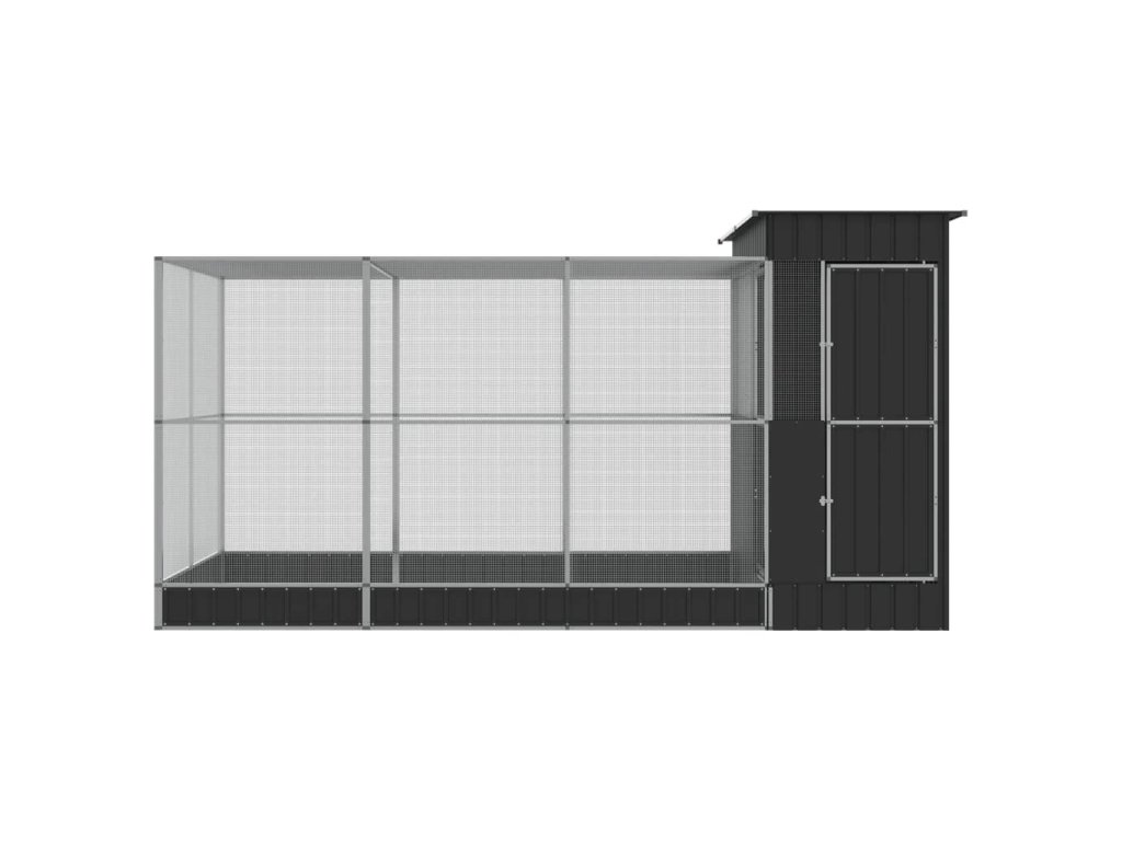 - Pevný rám: Ocel je mimořádně tvrdý a pevný materiál. Zajišťuje pevnost a stabilitu. Pozinkování poskytuje lepší ochranu proti korozi a je užitečné pro výrobky, které se budou používat venku i v drsném prostředí. Díky robustní konstrukci z pozinkované oceli vydrží tato ptačí voliéra opravdu dlouho.