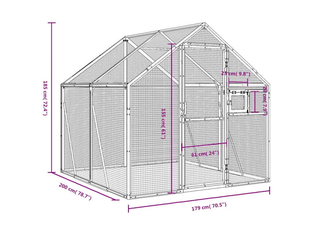 - Odolný materiál: Hliníkový kov je lehký a pevný. Je odolný proti korozi díky samoochranné oxidové vrstvě. Tato ptačí voliéra má robustní hliníkovou konstrukci a je vyrobena tak, aby velmi dlouho vydržela.