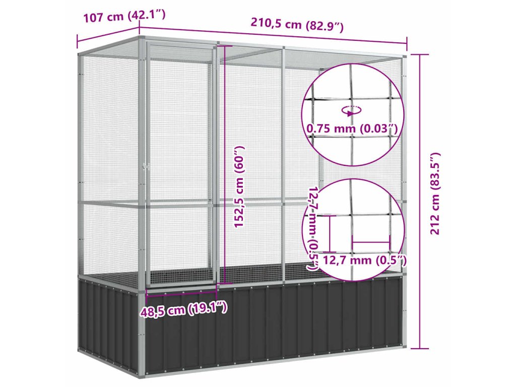 - Pevný rám: Ocel je mimořádně tvrdý a pevný materiál. Zajišťuje pevnost a stabilitu. Pozinkování poskytuje lepší ochranu proti korozi a je užitečné pro výrobky, které se budou používat venku i v drsném prostředí. Díky robustní konstrukci z pozinkované oceli vydrží tato ptačí voliéra opravdu dlouho.