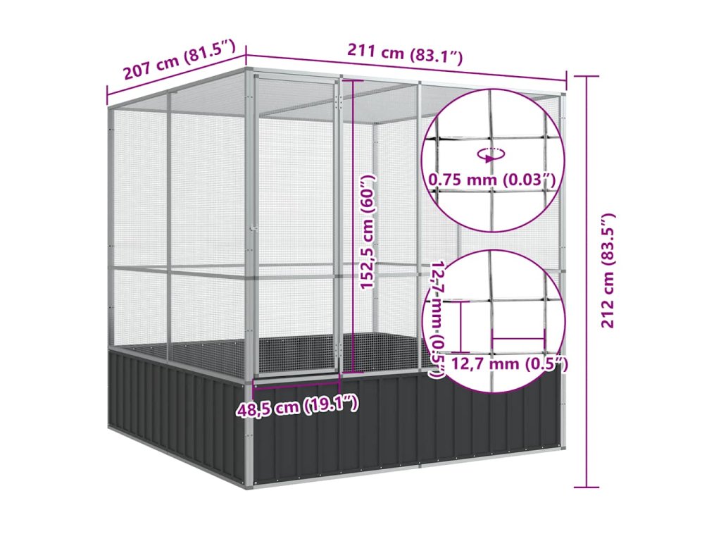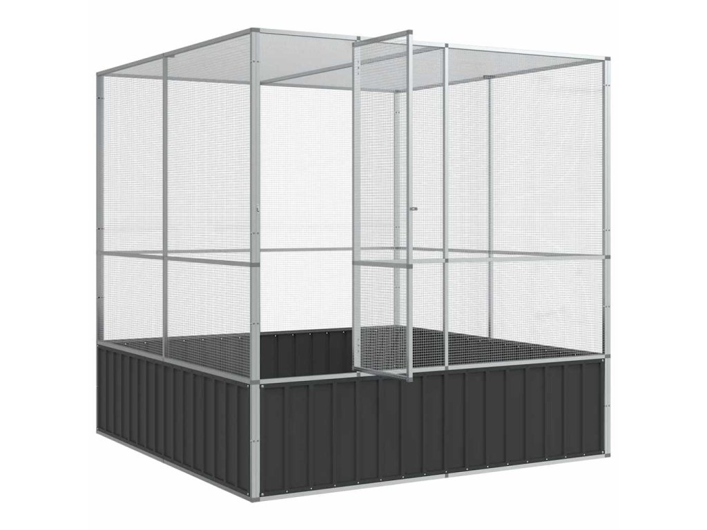- Pevný rám: Ocel je mimořádně tvrdý a pevný materiál. Zajišťuje pevnost a stabilitu. Pozinkování poskytuje lepší ochranu proti korozi a je užitečné pro výrobky, které se budou používat venku i v drsném prostředí. Díky robustní konstrukci z pozinkované oceli vydrží tato ptačí voliéra opravdu dlouho.