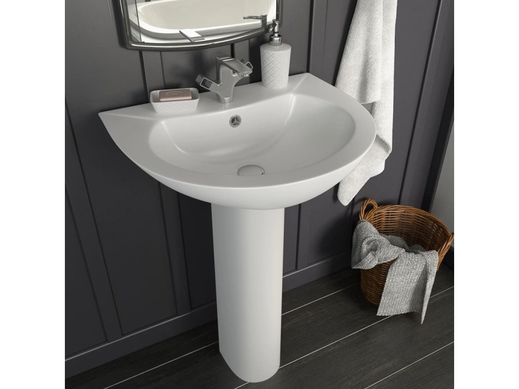 Naše volně stojící keramické umyvadlo sedí na podstavci. Zkrášlí každou koupelnu, umývárnu či převlékárnu.