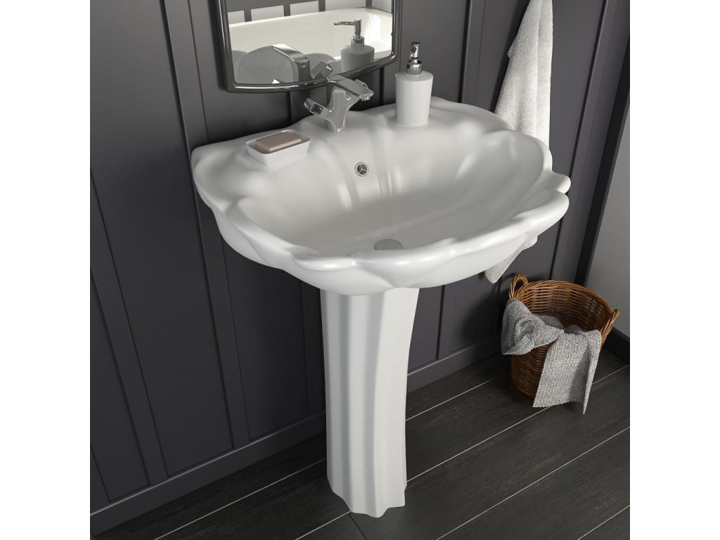 Naše volně stojící keramické umyvadlo sedí na podstavci. Zkrášlí každou koupelnu, umývárnu či převlékárnu.