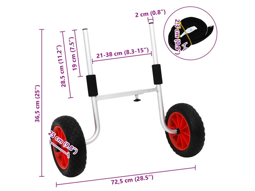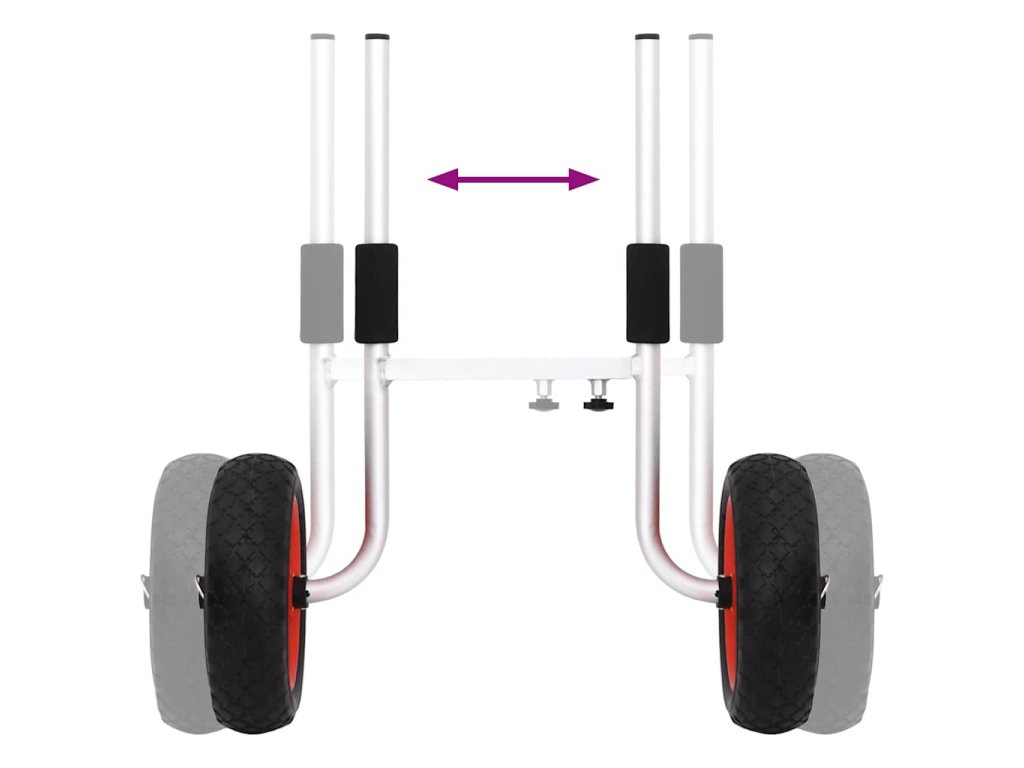 - Nastavitelná šířka: Tento kajakový vozík má nastavitelnou konstrukci, takže je vhodný pro různé kajaky s různou šířkou vypouštěcího otvoru.