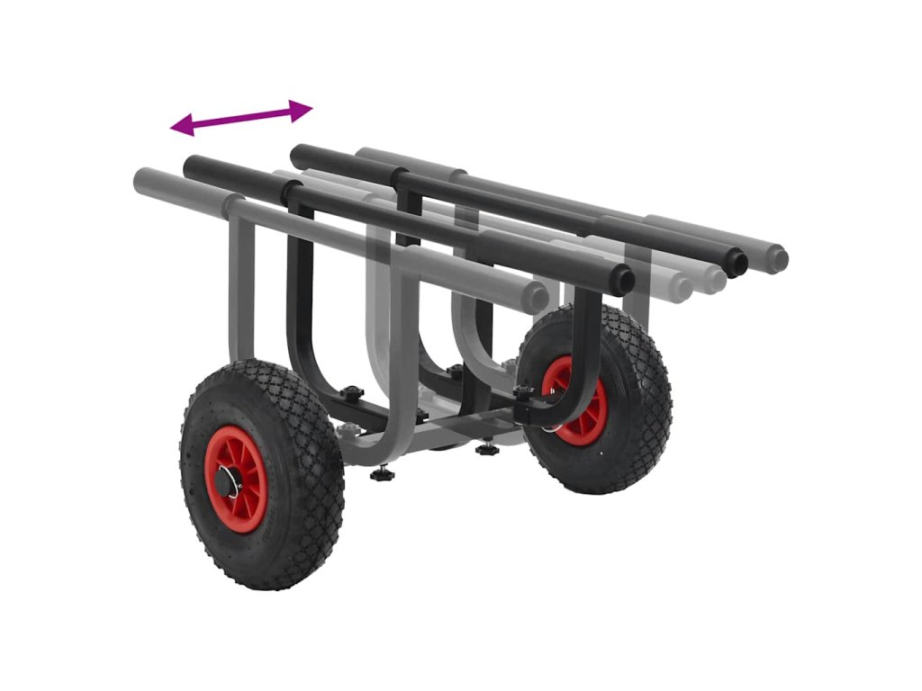 - Více aplikací: Díky nastavitelné šířce je vozík vhodný pro více typů kajaků, kánoí, lodí apod.