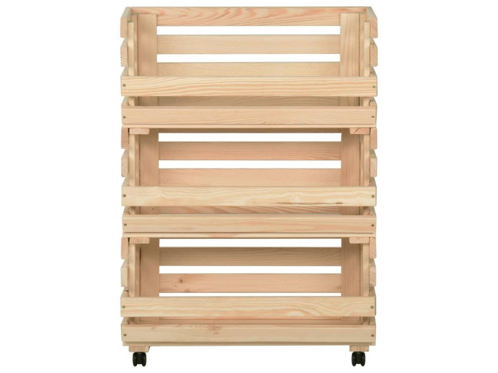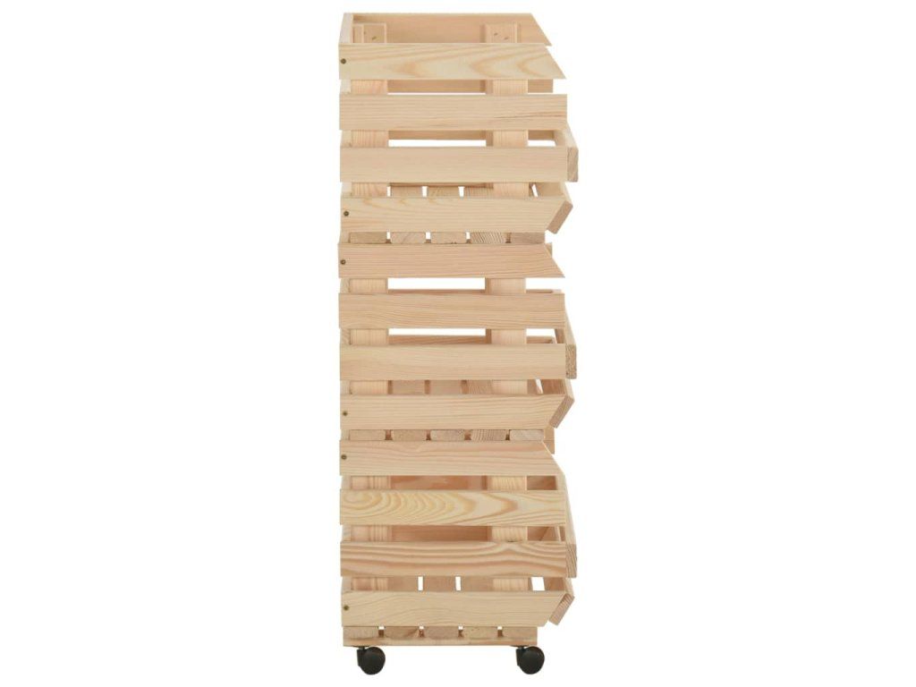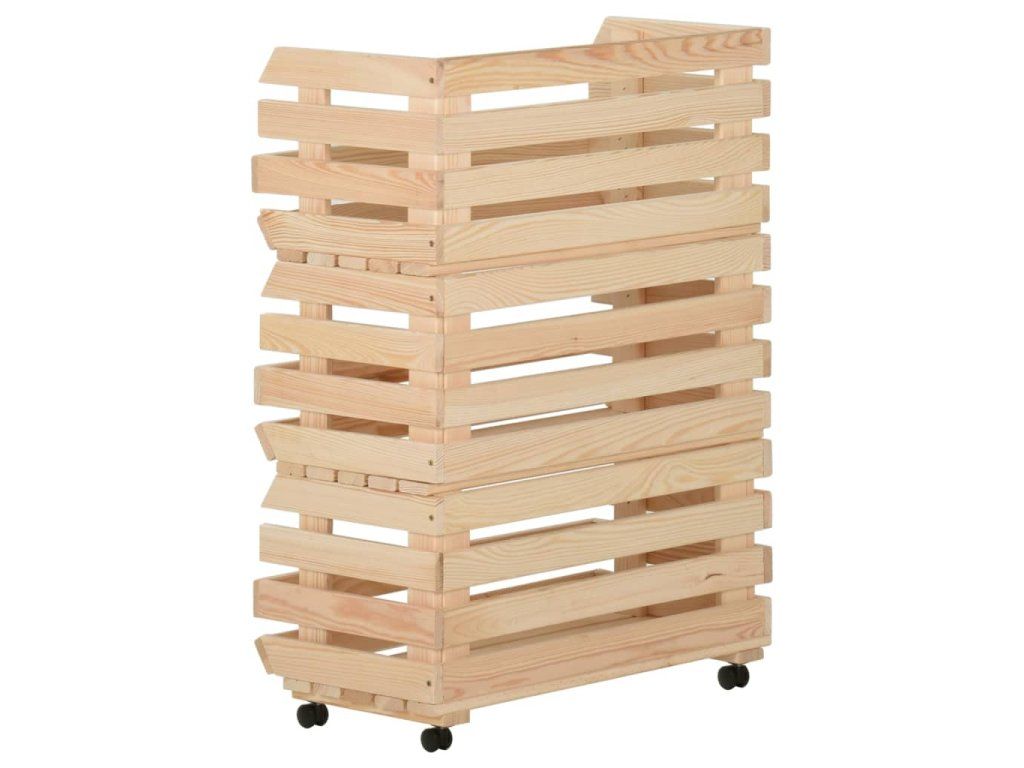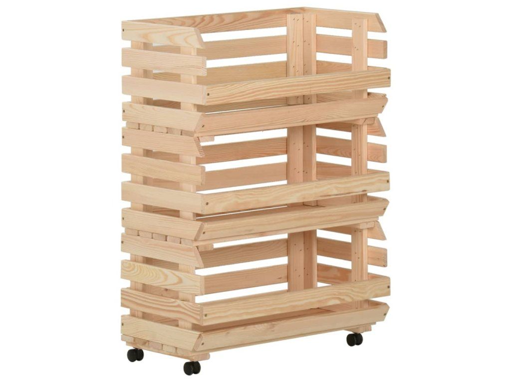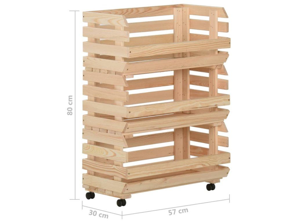 Bedýnkový vozík je vyrobený z masivního borového dřeva, takže je stabilní a odolný. Má 3 přihrádky pro umístění potravin, lahví a dalších nezbytností, které tak budete mít vždy po ruce. Jelikož má odnímatelnou konstrukci, můžete každou polici používat samostatně podle potřeby. Kuchyňský vozík je navíc vybavený kolečky pro snadné přesouvání.