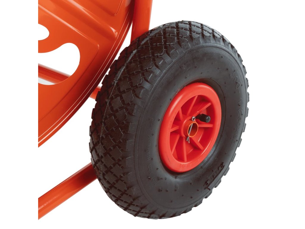 - Velká flexibilita: Kombinace delší tažné rukojeti a integrovaných koleček zajišťuje snadný pohyb navijáku po zahradě.