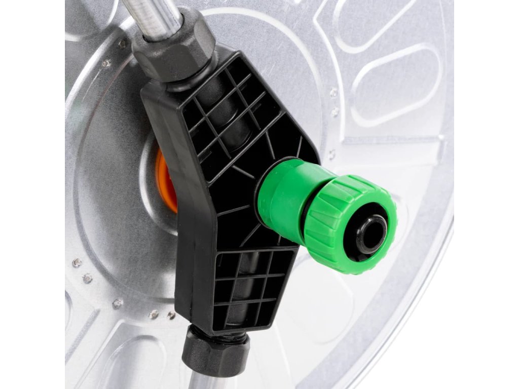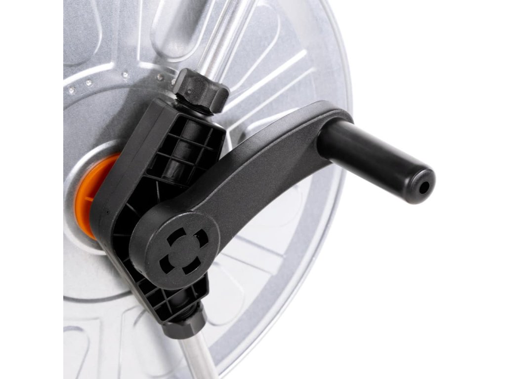 - Velká flexibilita: Kombinace delší tažné rukojeti a integrovaných koleček zajišťuje snadný pohyb navijáku po zahradě.
