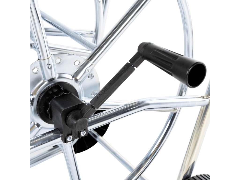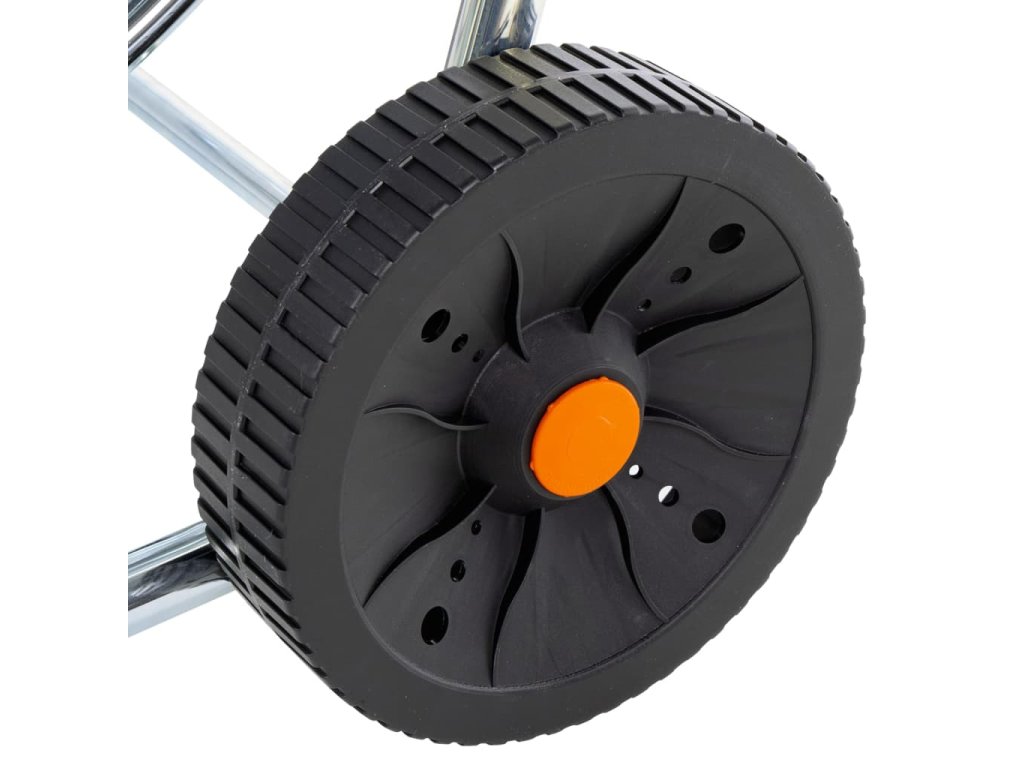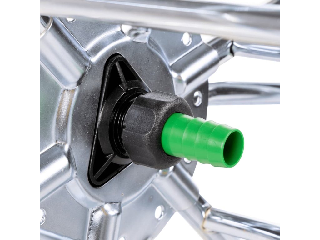 - Velká flexibilita: Kombinace delší tažné rukojeti a integrovaných koleček zajišťuje snadný pohyb navijáku po zahradě.