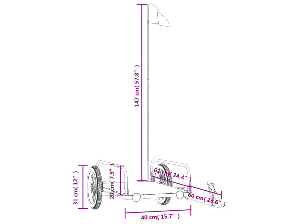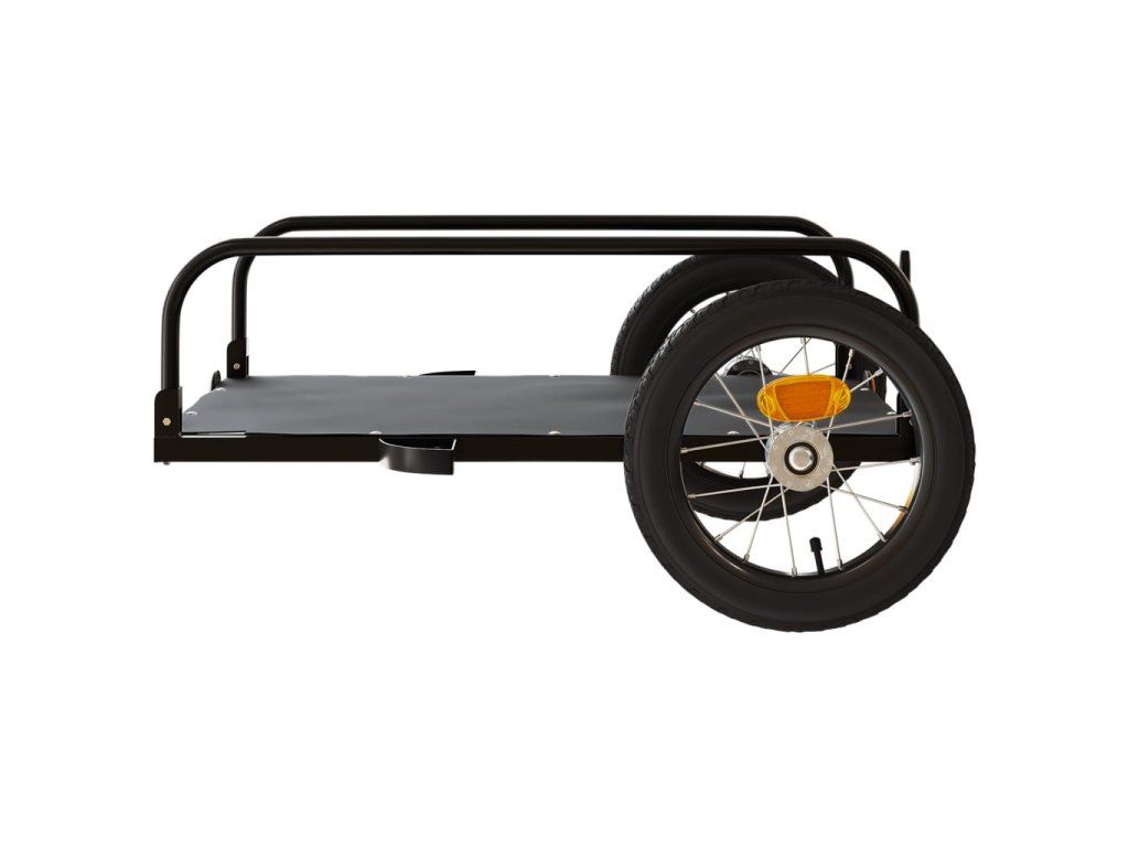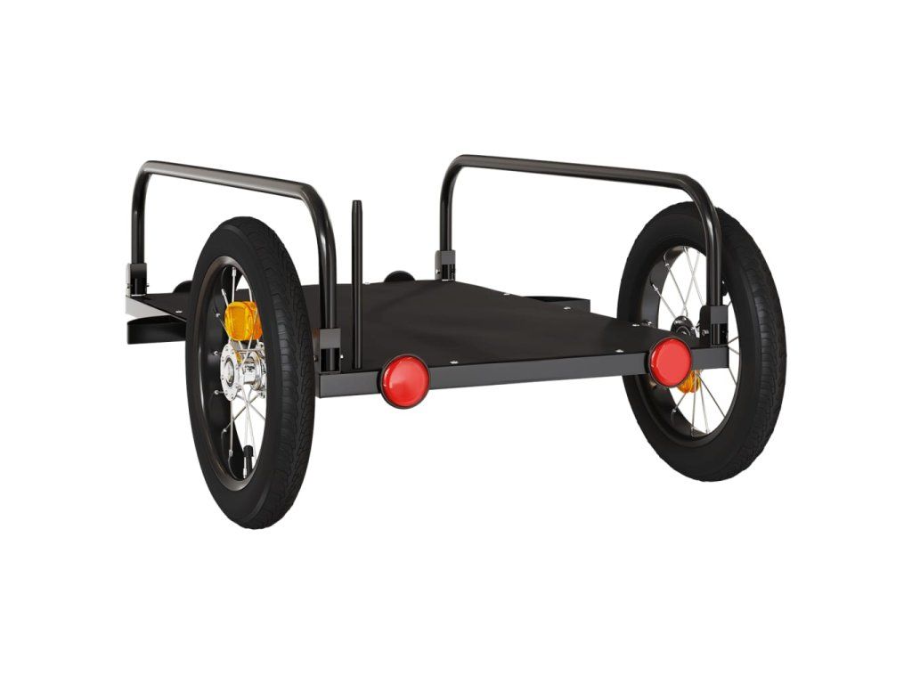 - Robustní materiál: Železo je pevný a tvrdý materiál. Je to oblíbený materiál pro průmyslové a nábytkářské konstrukce. Tento přívěsný vozík za kolo je vyroben ze železa a je velmi robustní a odolný.