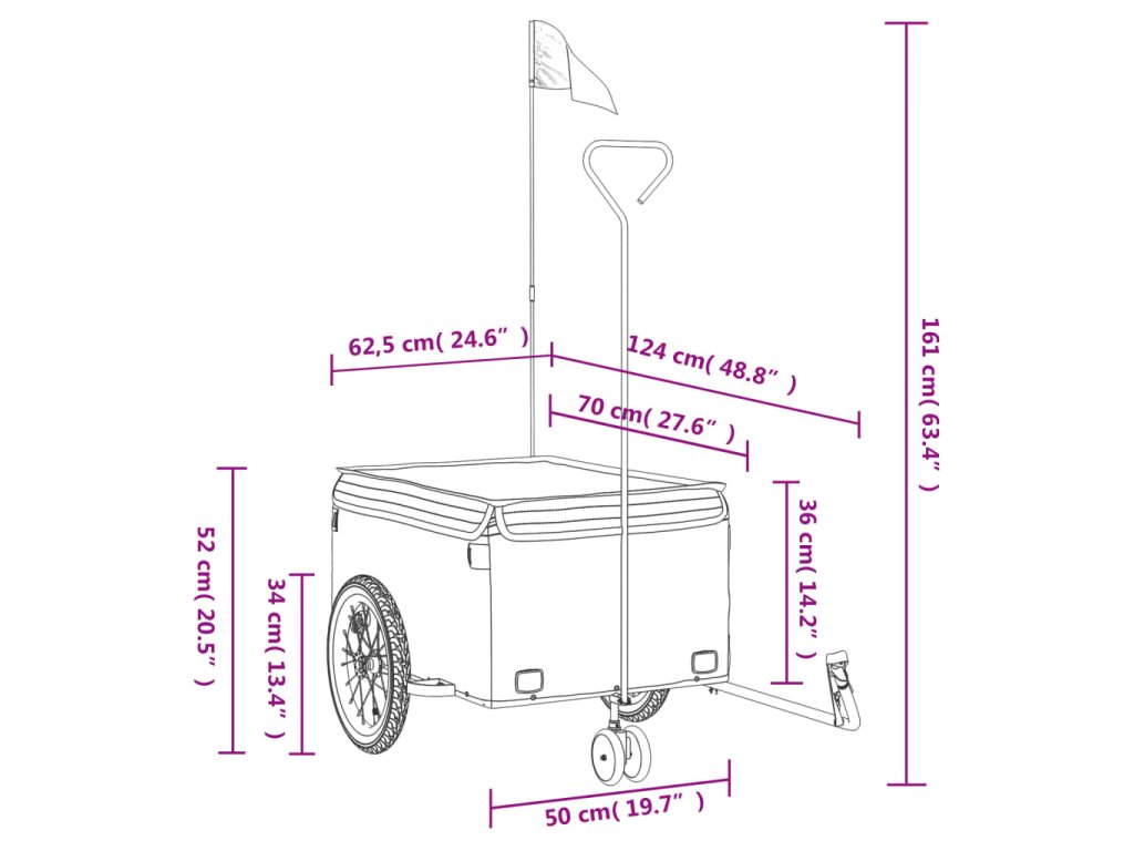 - Robustní materiál: Železo je pevný a tvrdý materiál. Je to oblíbený materiál pro průmyslové a nábytkářské konstrukce. Tento přívěsný vozík za kolo je vyroben ze železa a je velmi robustní a odolný.