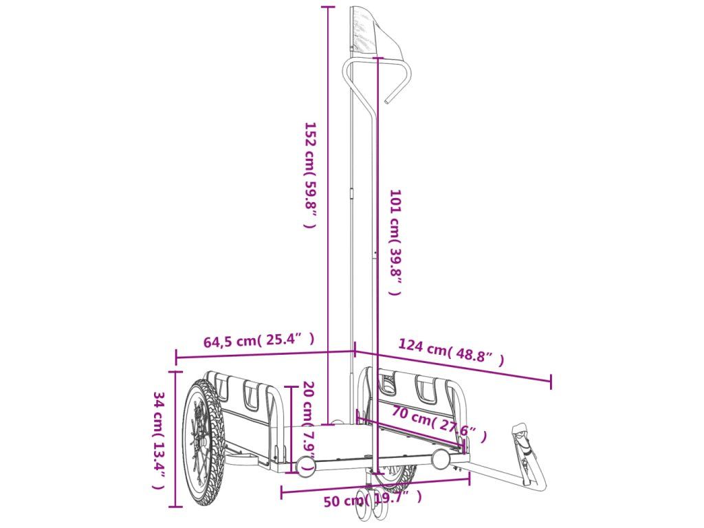 - Robustní konstrukce: Tento vozík za kolo má robustní konstrukci vyrobenou z práškově lakovaného železa. Železo je pevný a tvrdý materiál. Je to oblíbený materiál pro průmyslové a nábytkářské konstrukce. Práškový nástřik na povrchu železa vytváří ochrannou vrstvu proti rzi, korozi a opotřebení.