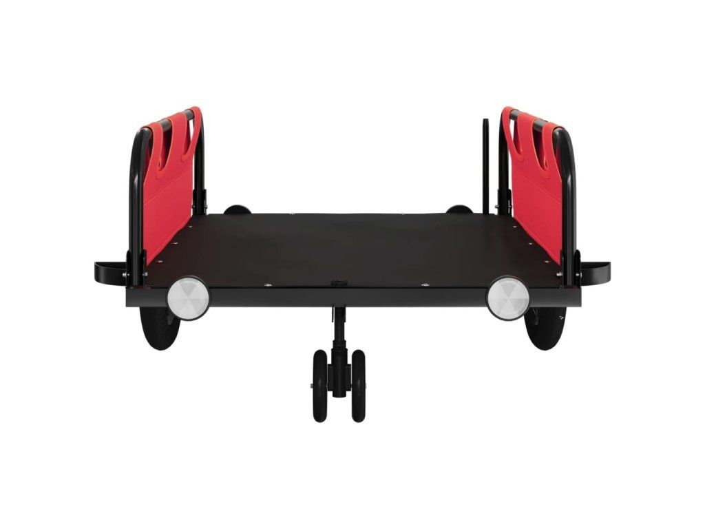 - Bezpečná jízda: Vozík má dvě velká kolečka, která umožňují hladkou jízdu v různých terénech. Odrazky na zadní straně zajišťují viditelnost ve tmě, navíc vlajka pomůže zvýšit bezpečnost provozu.