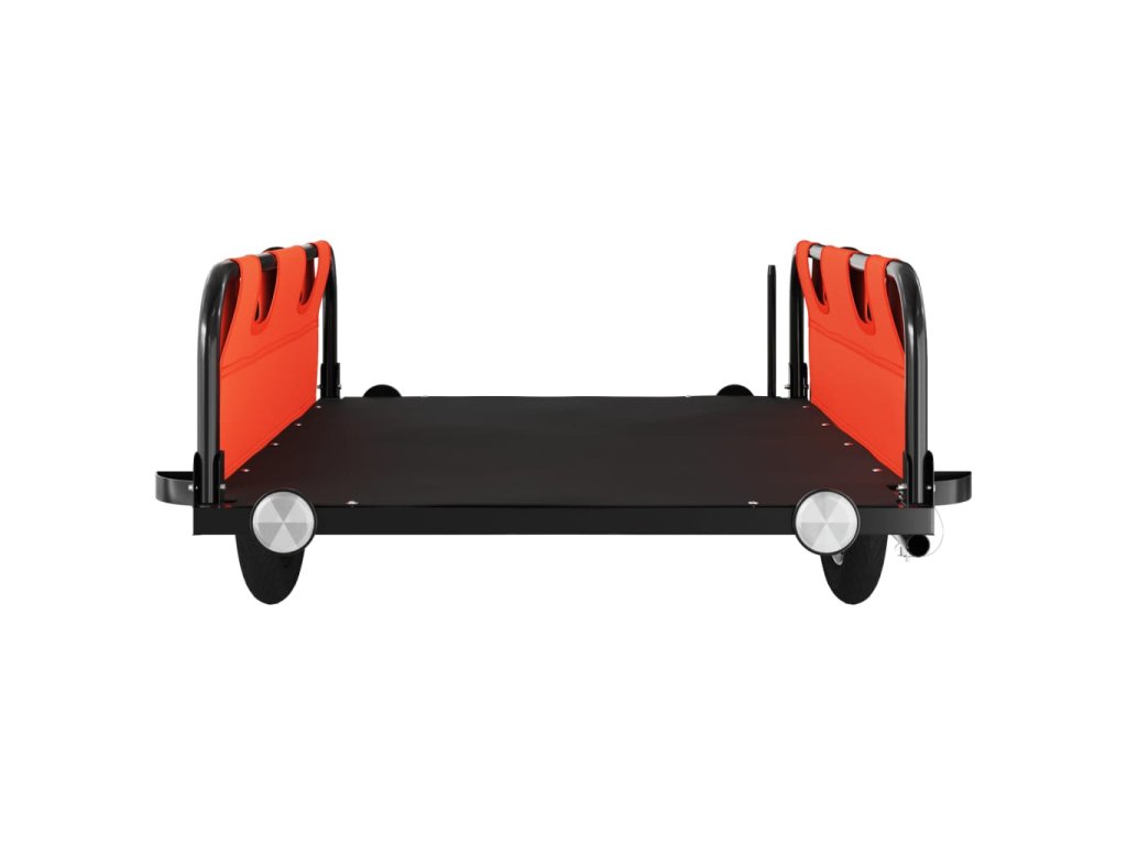- Bezpečná jízda: Vozík má dvě velká kolečka, která umožňují hladkou jízdu v různých terénech. Odrazky na zadní straně zajišťují viditelnost ve tmě, navíc vlajka pomůže zvýšit bezpečnost provozu.