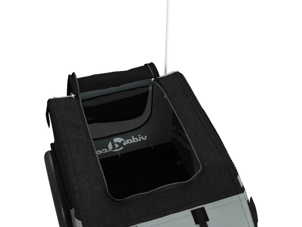 - Praktický přívěs za kolo: Tento vozík za kolo je vyroben z oxfordské tkaniny a je vybaven PVC krytem, který chrání vašeho domácího mazlíčka před mrholením. Dno vozíku tvoří černá nosná deska, vytvářející pohodlný prostor.