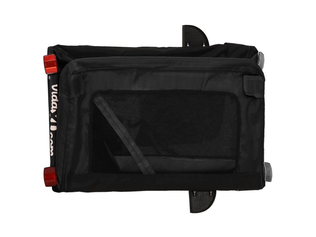 - Praktický přívěs za kolo: Tento vozík za kolo je vyroben z oxfordské tkaniny a je vybaven PVC krytem, který chrání vašeho domácího mazlíčka před mrholením. Dno vozíku tvoří černá nosná deska, vytvářející pohodlný prostor.