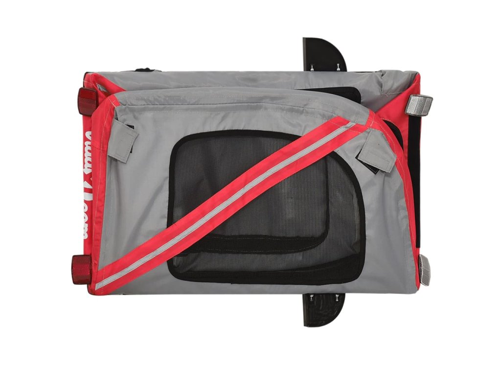 - Praktický přívěs za kolo: Tento vozík za kolo je vyroben z oxfordské tkaniny a je vybaven PVC krytem, který chrání vašeho domácího mazlíčka před mrholením. Dno vozíku tvoří černá nosná deska, vytvářející pohodlný prostor.