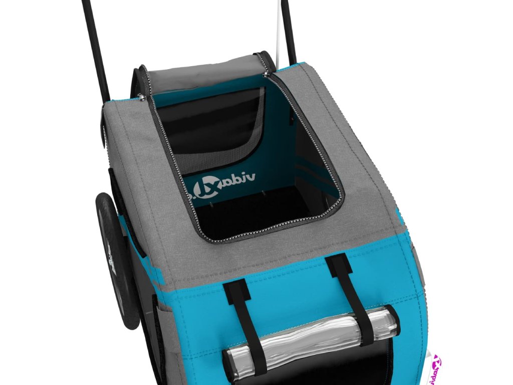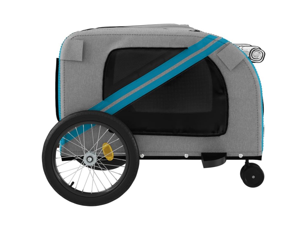 - Praktický přívěs za kolo: Tento vozík za kolo je vyroben z oxfordské tkaniny a je vybaven PVC krytem, který chrání vašeho domácího mazlíčka před mrholením. Dno vozíku tvoří černá nosná deska, vytvářející pohodlný prostor.