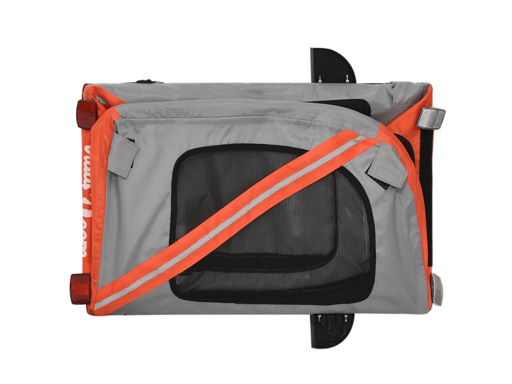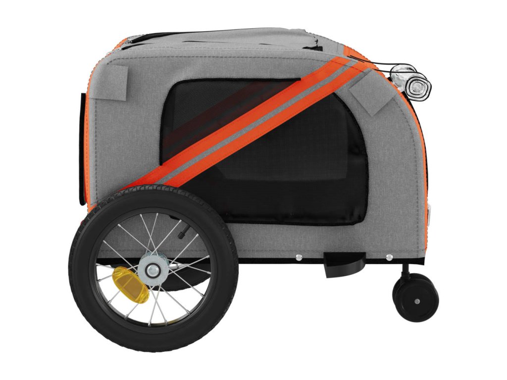 - Praktický přívěs za kolo: Tento vozík za kolo je vyroben z oxfordské tkaniny a je vybaven PVC krytem, který chrání vašeho domácího mazlíčka před mrholením. Dno vozíku tvoří černá nosná deska, vytvářející pohodlný prostor.