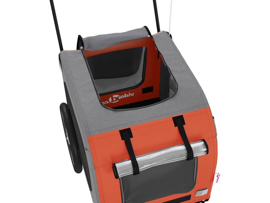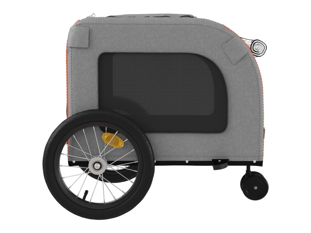 - Praktický přívěs za kolo: Tento vozík za kolo je vyroben z oxfordské tkaniny a je vybaven PVC krytem, který chrání vašeho domácího mazlíčka před mrholením. Dno vozíku tvoří černá nosná deska, vytvářející pohodlný prostor.