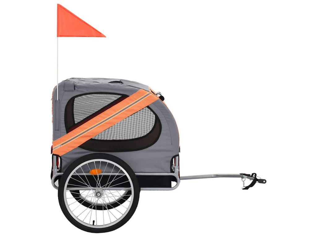 Tento vozík za kolo pro psa má pevný ocelový rám a je vyrobený z oxfordské tkaniny, která je odolná vůči vodě, hodně toho vydrží a snadno se udržuje. Po obou stranách má okna ze síťoviny, která vylepšují cirkulaci vzduchu. Také určitě oceníte dva přístupy, a to vepředu a vzadu, takže do něj svého psího kamaráda snadno dostanete. Každé kolo a zadní strana vozíku disponuje reflektorem, aby byl dobře viditelný. Otočné bezpečnostní klouby zabrání převržení vozíku, pokud z kola spadnete. Spodní strana je zpevněná speciálním materiálem, který je odolný vůči vlhkosti a neklouzavý. Vozík snadno ke kolu připojíte rychlospojkou. Pokud jej zrovna nepotřebujete, dá se složit tak, aby nezabíral místo. Montáž je velmi snadná.