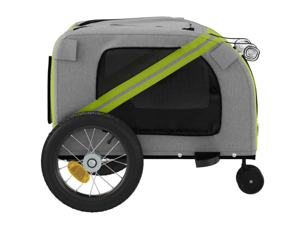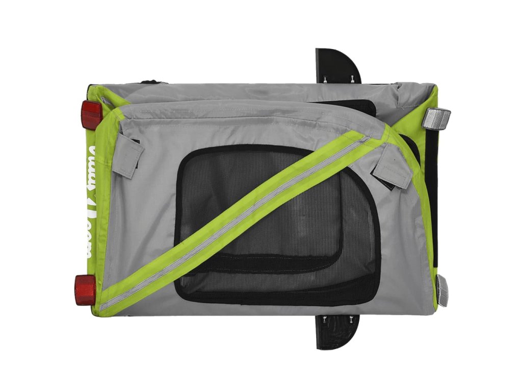 - Praktický přívěs za kolo: Tento vozík za kolo je vyroben z oxfordské tkaniny a je vybaven PVC krytem, který chrání vašeho domácího mazlíčka před mrholením. Dno vozíku tvoří černá nosná deska, vytvářející pohodlný prostor.