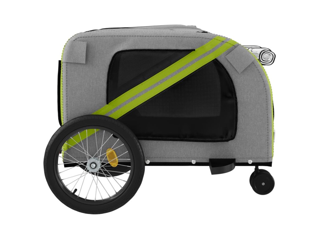 - Praktický přívěs za kolo: Tento vozík za kolo je vyroben z oxfordské tkaniny a je vybaven PVC krytem, který chrání vašeho domácího mazlíčka před mrholením. Dno vozíku tvoří černá nosná deska, vytvářející pohodlný prostor.