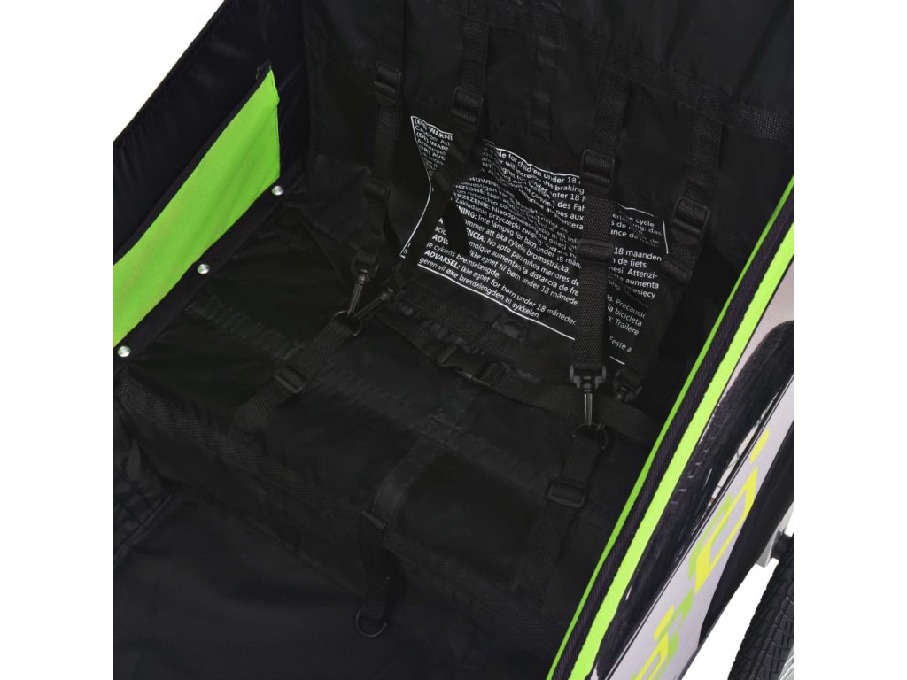 Tento vozík za kolo nabízí dětem pohodlné a bezpečné svezení, když se vydáte na projížďku na kole. Je vhodný pro 1 až 2 děti o celkové hmotnosti do 30 kg. Jeho pětibodový systém bezpečnostních pásů poskytuje dětem optimální bezpečí.