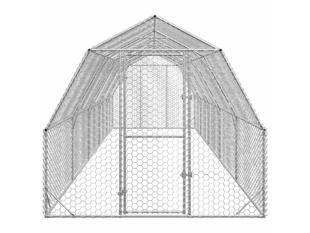 - Robustní konstrukce: Tento kurník je vyroben z pozinkovaného ocelového rámu, který zajišťuje dlouhou životnost a odolnost proti korozi a poskytuje bezpečné prostředí pro vaše kuřata.