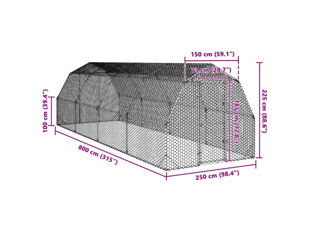 - Robustní konstrukce: Tento kurník je vyroben z pozinkovaného ocelového rámu, který zajišťuje dlouhou životnost a odolnost proti korozi a poskytuje bezpečné prostředí pro vaše kuřata.