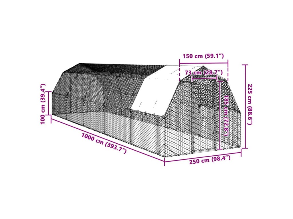 - Robustní konstrukce: Tento kurník je vyroben z pozinkovaného ocelového rámu, který zajišťuje dlouhou životnost a odolnost proti korozi a poskytuje bezpečné prostředí pro vaše kuřata.