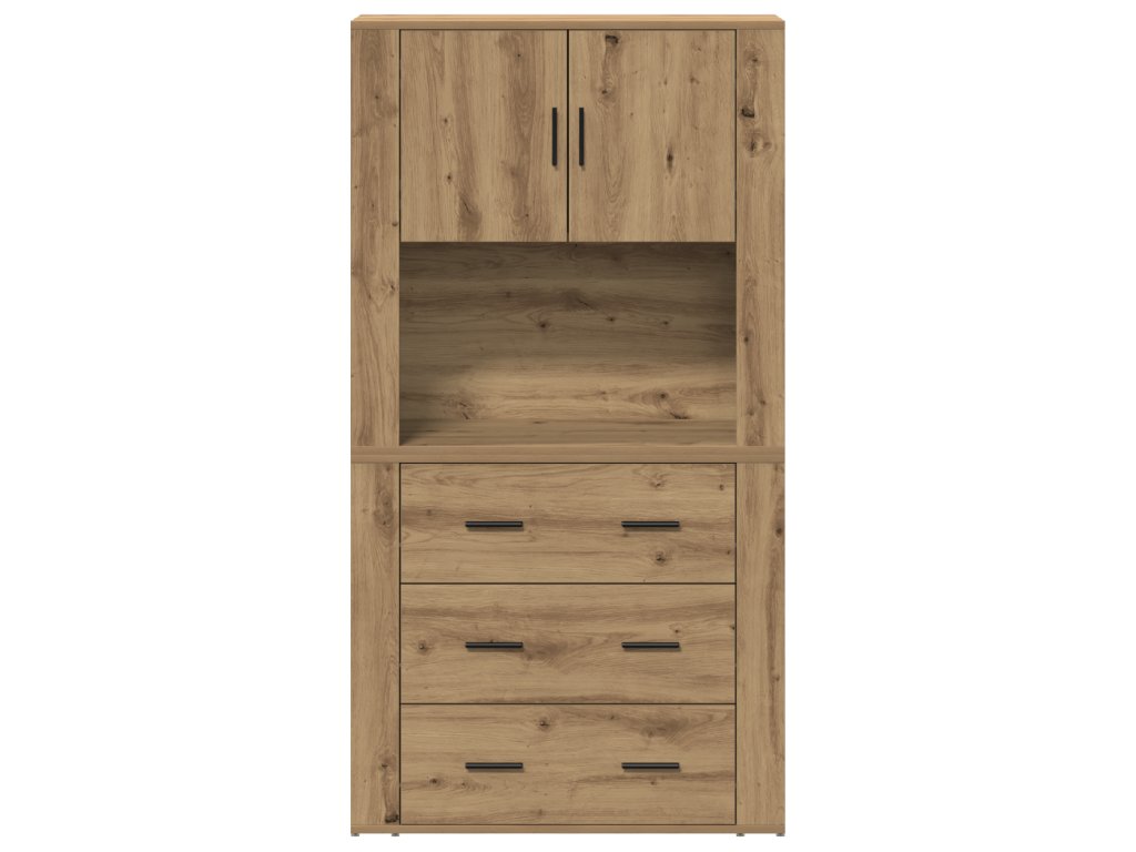 - Odolné materiály: Vyrobeno z kompozitního dřeva, tahle skříň vypadá skvěle s dokončením artisan ořech, kombinující pevnost se stylem. Silný rám udrží dobrou váhu, ideální pro těžké předměty jako velké servírovací tácy bez naklánění.