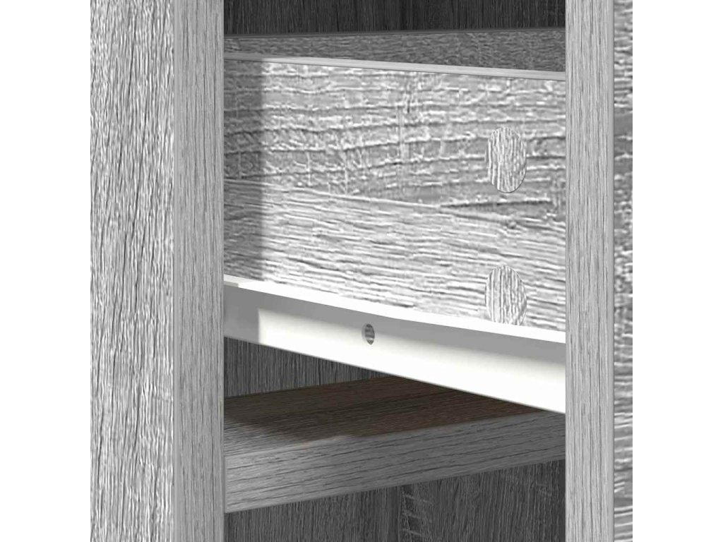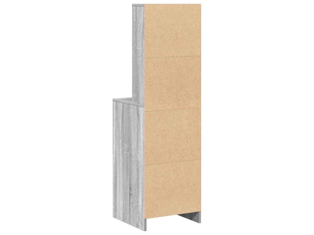 - Konstrukce z kompozitního dřeva Tenhle moderní vysoký kabinet je převážně z kompozitního dřeva, takže má pevnou strukturu, co unese kdeco v uložených prostorách. Matný povrch na rámu a úchytkách nejenže vypadá moderně, ale také pomáhá, aby povrch nebyl otravně lesklý.