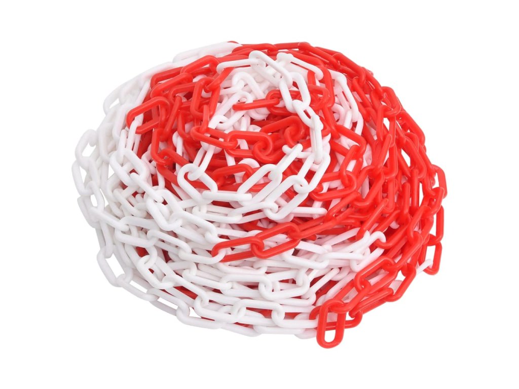 Tento výstražný řetěz slouží jako efektivní dočasná bezpečnostní zábrana. Jeho kontrastní barvy jsou dobře zřetelné.