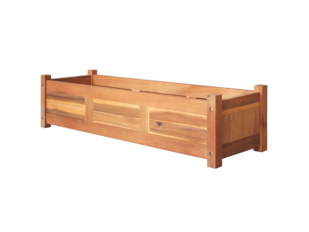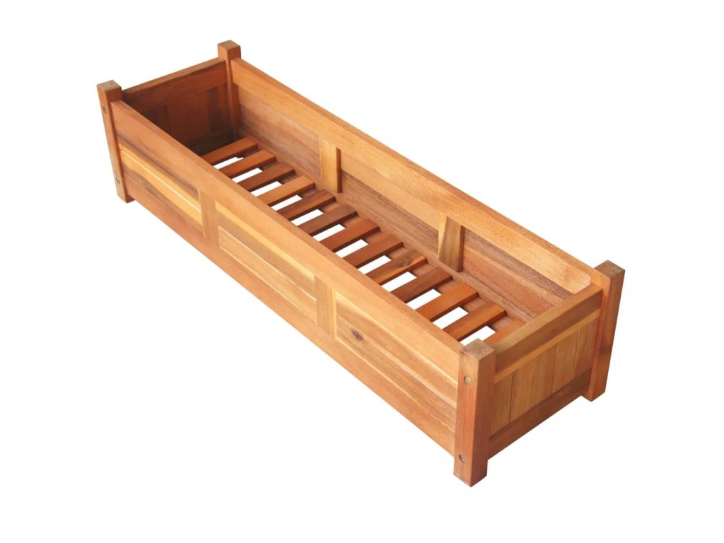 Tento truhlík, vyrobený z vysoce kvalitního akáciového dřeva, je velmi odolný a trvanlivý. Má olejovou povrchovou úpravu, která mu dodává hřejivý rustikální odstín. Dno truhlíku je laťkové, aby udrželo zeminu na místě a zároveň jím mohla nadbytečná voda volně odtékat.