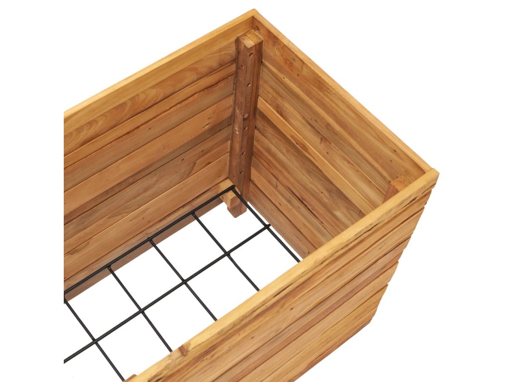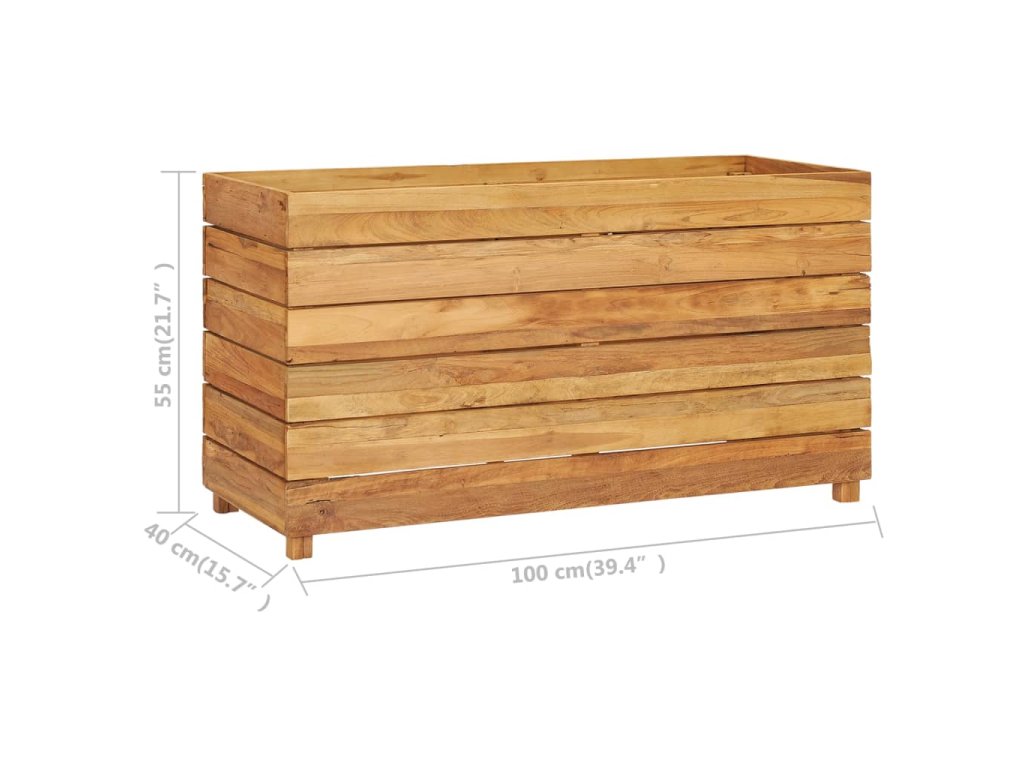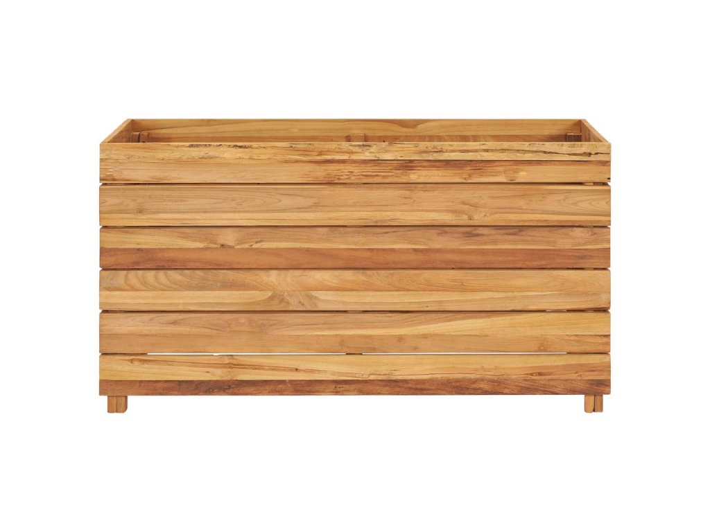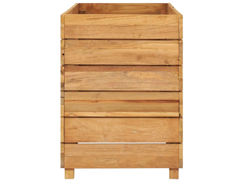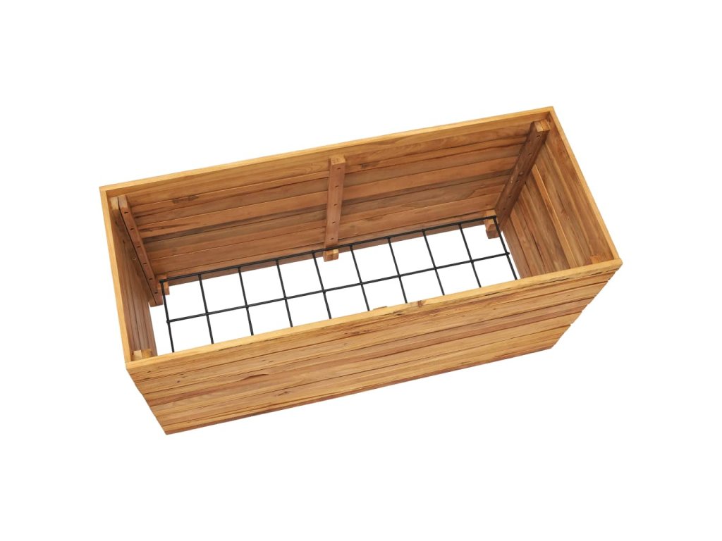 Tento truhlík je vyrobený z masivního teakového dřeva, takže je mimořádně robustní a odolný. Krásná kresba dřeva propůjčuje každému kusu nábytku jeho jedinečný a od všech ostatních lehce odlišný vzhled. Čtyři dřevěné nohy ve spodní části zaručují lepší stabilitu. Dno truhlíku je opatřeno ocelovou podložkou, na kterou položíte své květináče. Sestavení tohoto produktu je snadné.