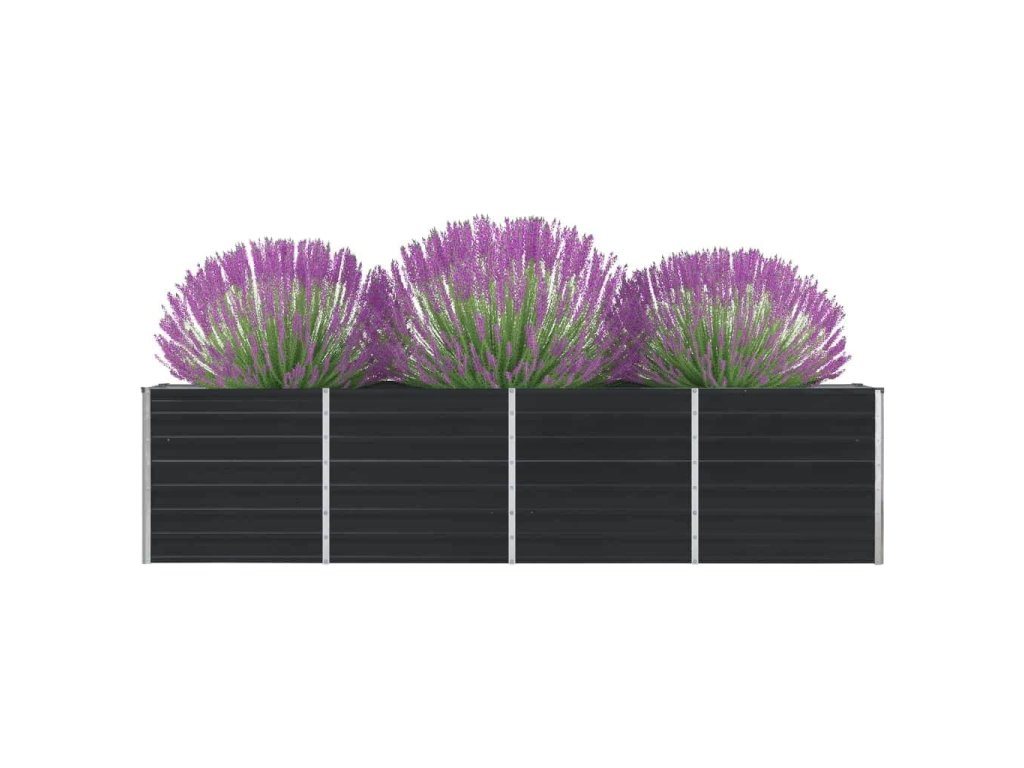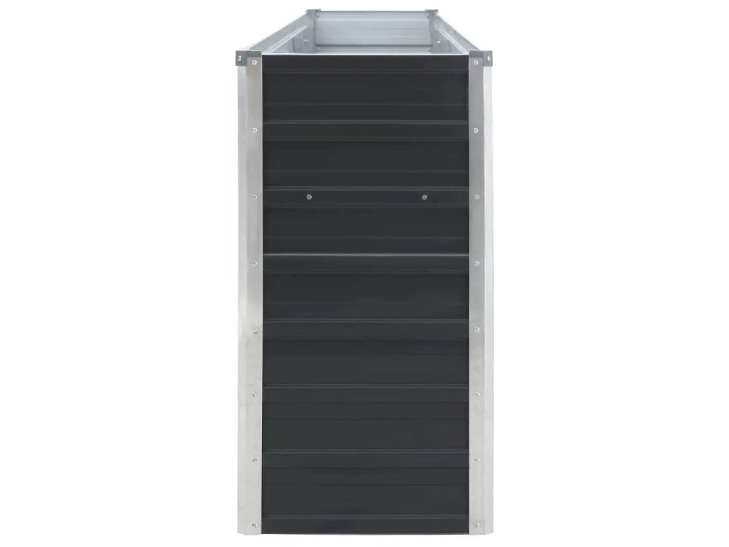 Tento vyvýšený zahradní truhlík je mimořádně odolný a krásně vyrobený. Je dostatečně hluboký a dostatečně široký, aby se do něj vešlo velké množství půdy a poskytl dostatek prostoru pro vaše rostliny, zeleninu, byliny a květiny. Díky svému jednoduchému obdélníkovému designu to bude stylový doplněk na každý balkon, terasu nebo dvůr. Je vyroben z pozinkované oceli a je opatřen vnitřními opěrnými držáky, díky nimž je tento truhlík velmi robustní a odolný. Rám truhlíku je navržen tak, aby zde nebyly nebezpečné ostré hrany.