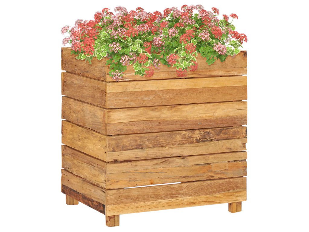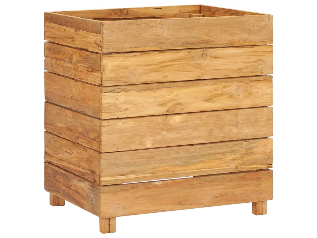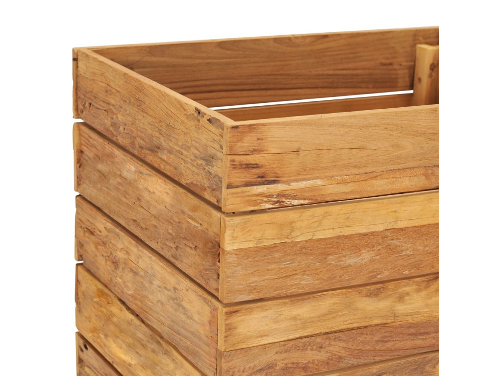 Tento truhlík je vyrobený z masivního teakového dřeva, takže je mimořádně robustní a odolný. Krásná kresba dřeva propůjčuje každému kusu nábytku jeho jedinečný a od všech ostatních lehce odlišný vzhled. Čtyři dřevěné nohy ve spodní části zaručují lepší stabilitu. Dno truhlíku je opatřeno ocelovou podložkou, na kterou položíte své květináče. Sestavení tohoto produktu je snadné.