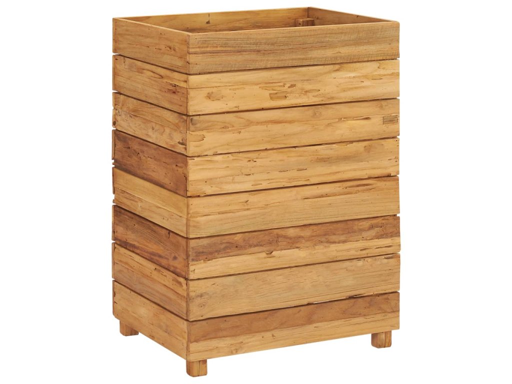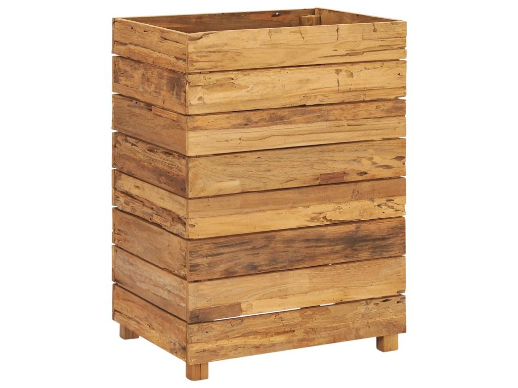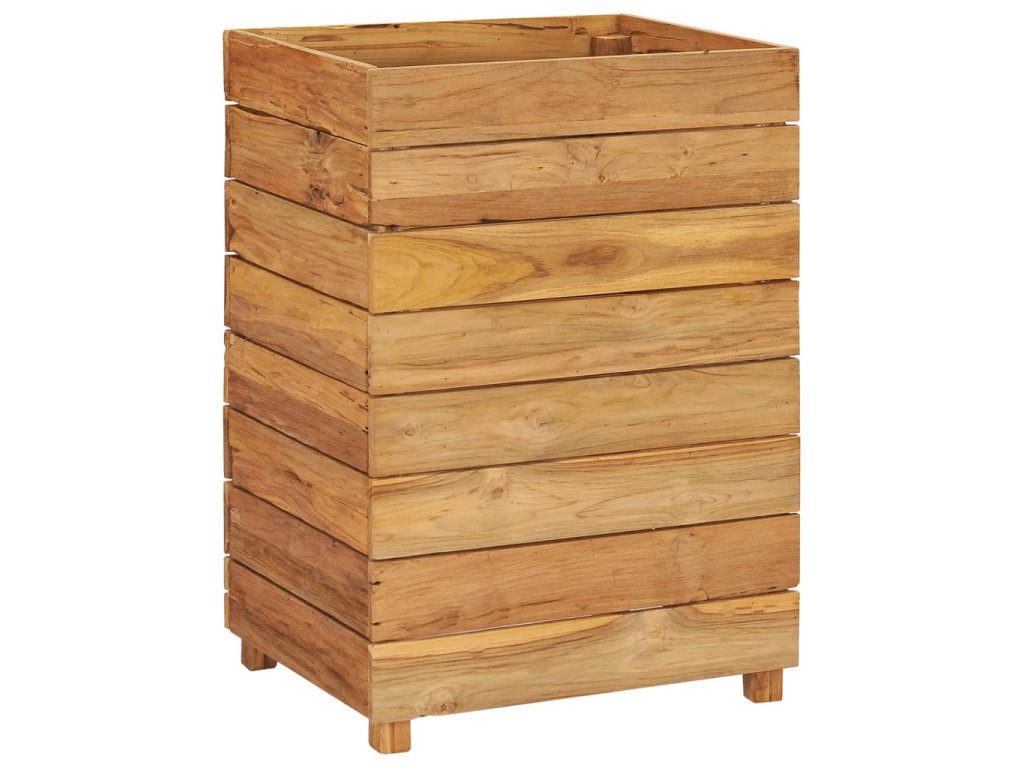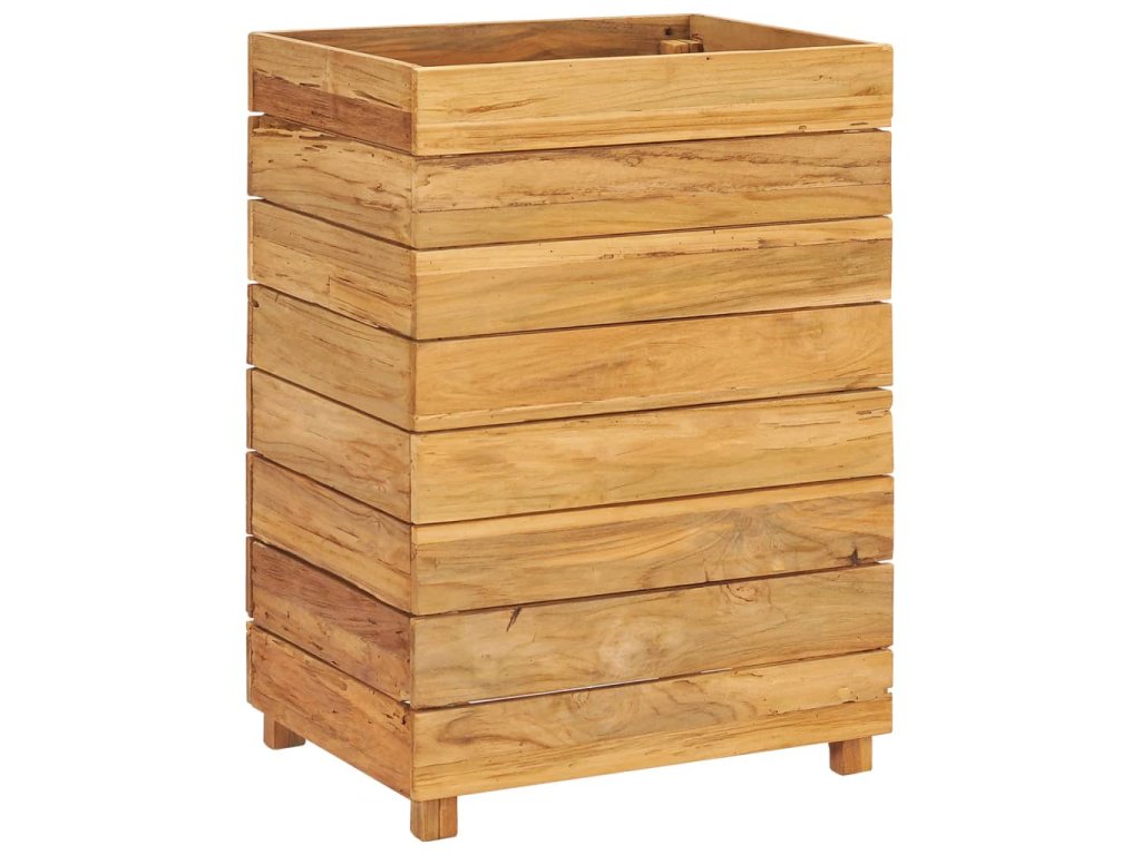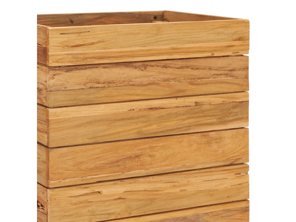 Truhlík je vyrobený z recyklovaného teaku, je tudíž velmi robustní a má dlouhou životnost. Krásná kresba dřeva je vždy jedinečná, a proto je i každý truhlík originální kus, lehce odlišný od všech ostatních. Čtyři dřevěné nohy zlepšují jeho stabilitu. Dno truhlíku je dále vybavené ocelovou podložkou, kterou lze umístit do 2 různých úrovní, takže si snadno zvolíte výšku pro vaše květináče. Sestavení tohoto produktu je jednoduché.