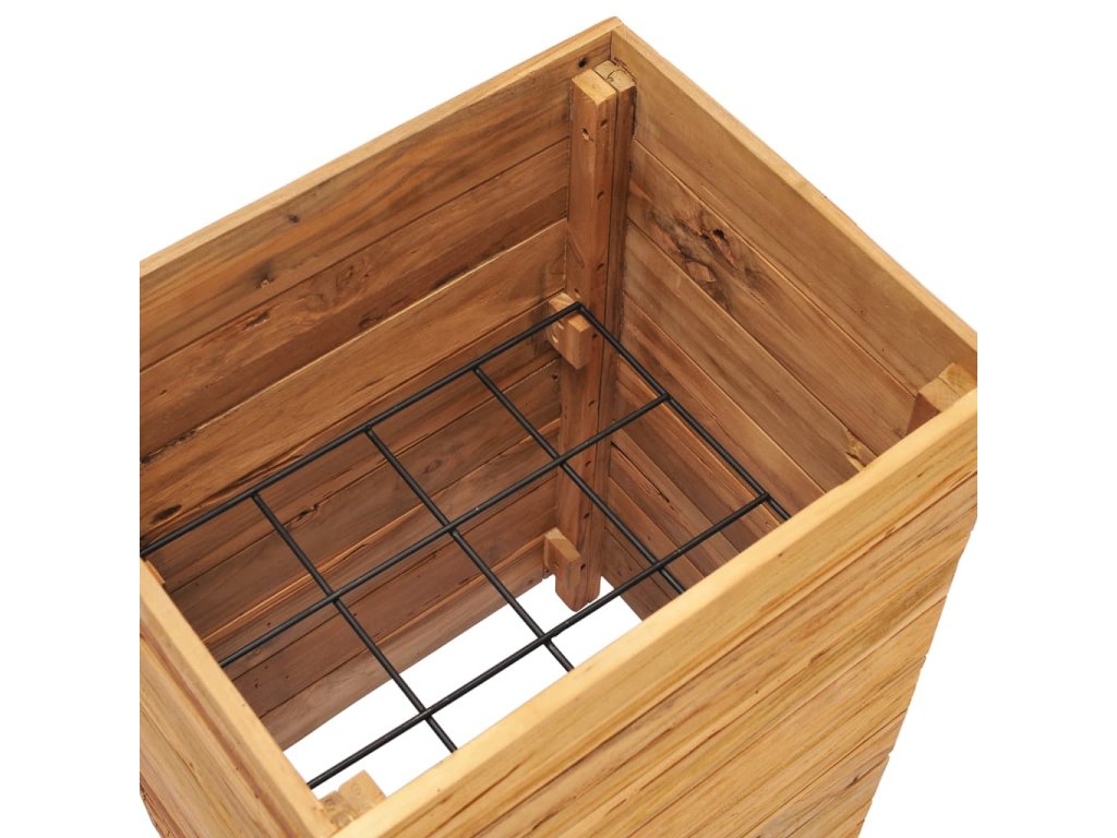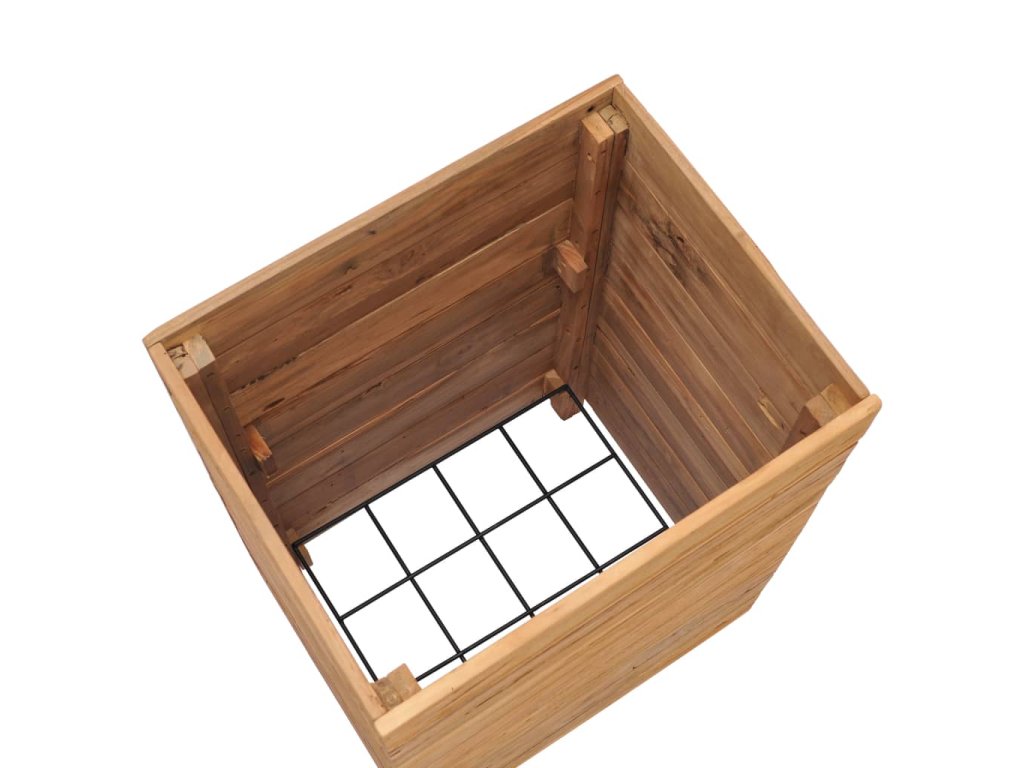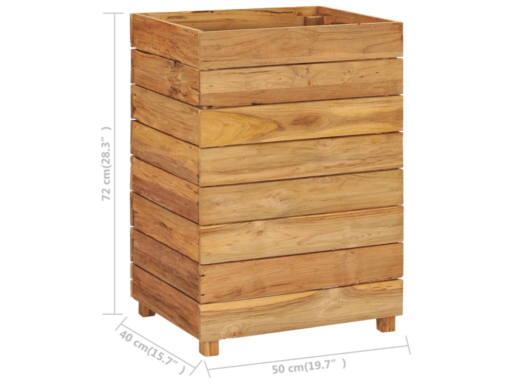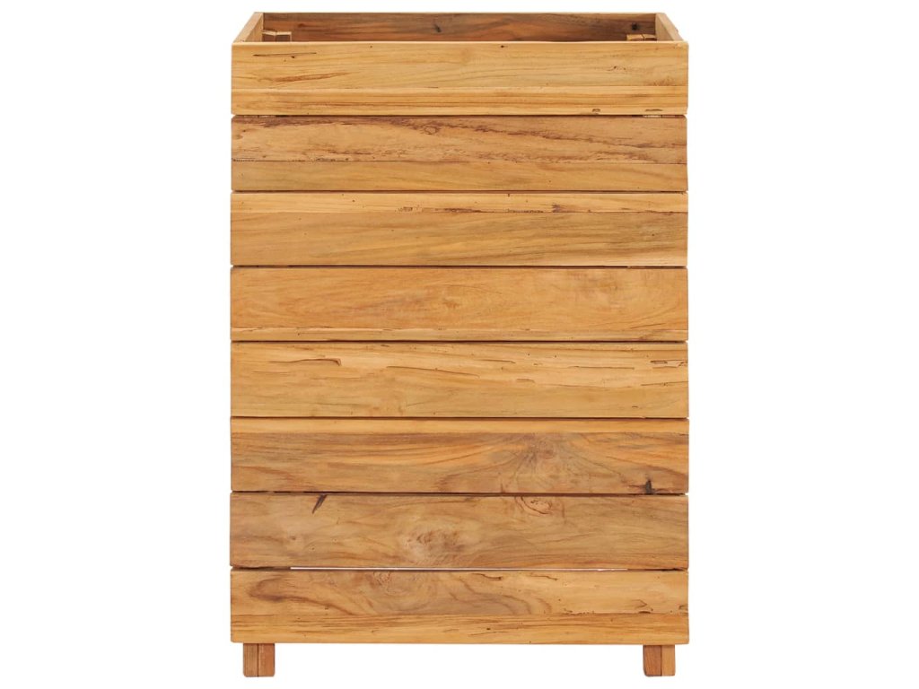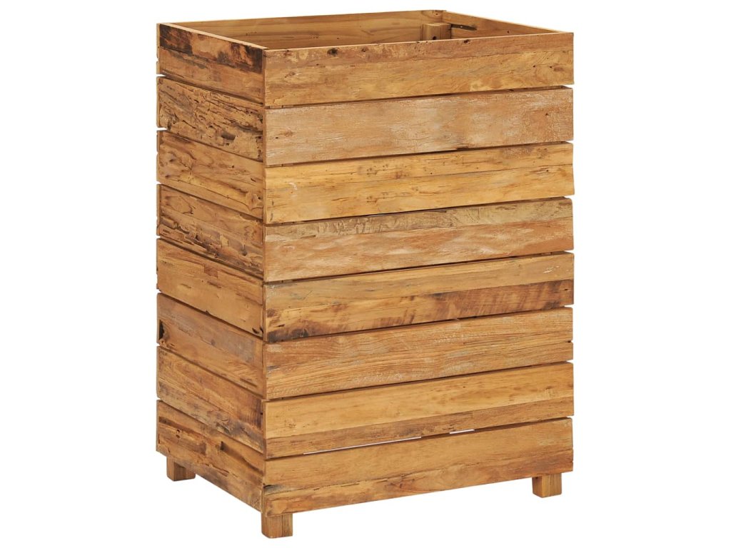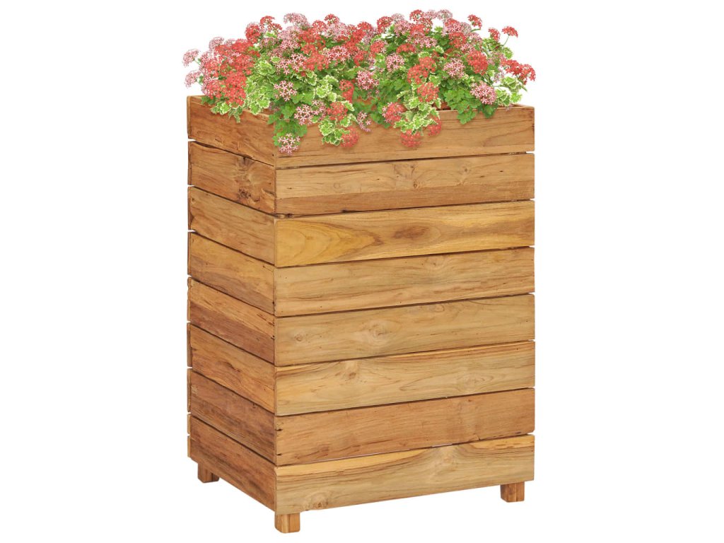 Truhlík je vyrobený z recyklovaného teaku, je tudíž velmi robustní a má dlouhou životnost. Krásná kresba dřeva je vždy jedinečná, a proto je i každý truhlík originální kus, lehce odlišný od všech ostatních. Čtyři dřevěné nohy zlepšují jeho stabilitu. Dno truhlíku je dále vybavené ocelovou podložkou, kterou lze umístit do 2 různých úrovní, takže si snadno zvolíte výšku pro vaše květináče. Sestavení tohoto produktu je jednoduché.