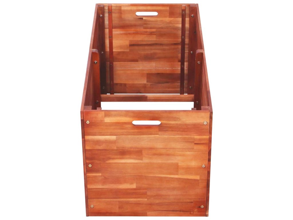 Truhlík má jednoduchý design a rozzáří vaši zahradu přírodními barvami. Je hluboký a dostatečně široký, aby dokázal pojmout velké množství zeminy, a poskytne vám tak spoustu místa k zasazení vašich rostlin, zeleniny, bylinek a květin. Truhlík je zhotoven z masivního akáciového dřeva s olejovaným povrchem, výborně tudíž odolává počasí a velmi dobře se hodí k venkovnímu použití. Truhlík je třeba nejdříve sestavit.