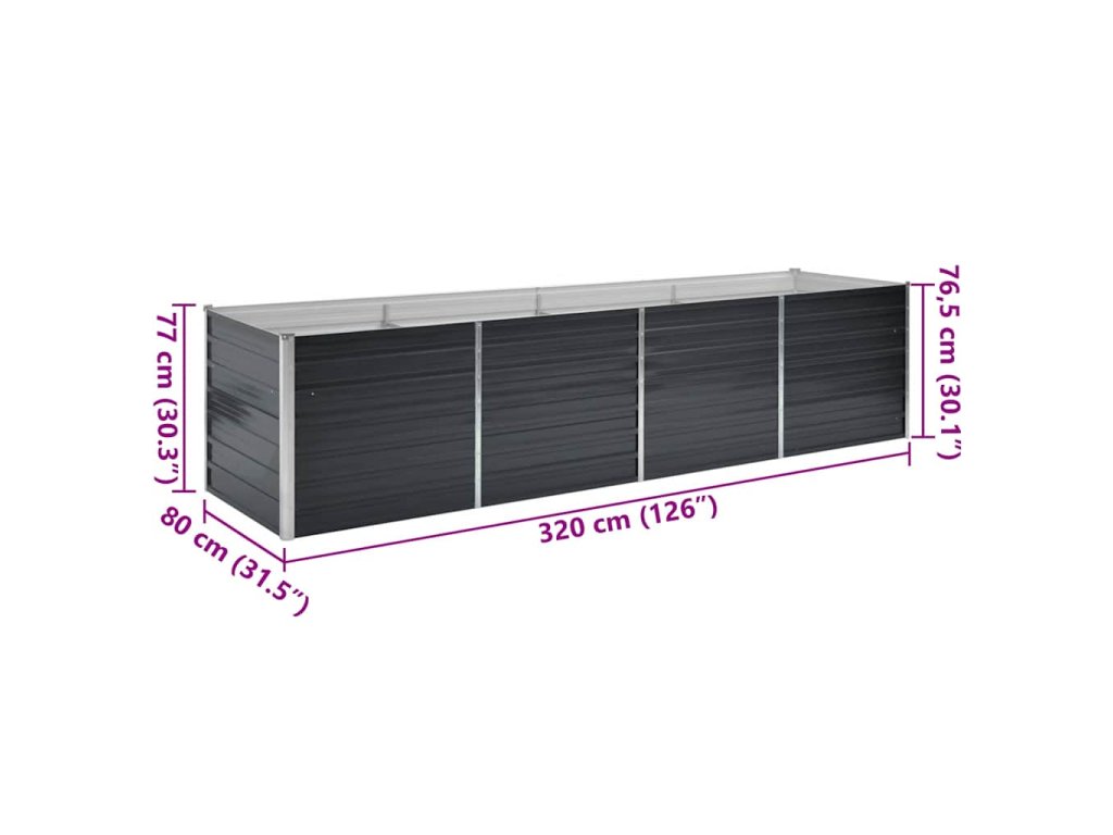 Truhlík je dostatečně hluboký a široký, aby dokázal pojmout velké množství zeminy, takže vám poskytne spoustu místa k zasazení vašich rostlin, bylinek, květin anebo zeleniny. Je zhotoven z vysoce odolné pozinkované oceli, výborně tudíž odolává počasí a je vhodný pro venkovní použití. Truhlík je třeba nejdříve sestavit.