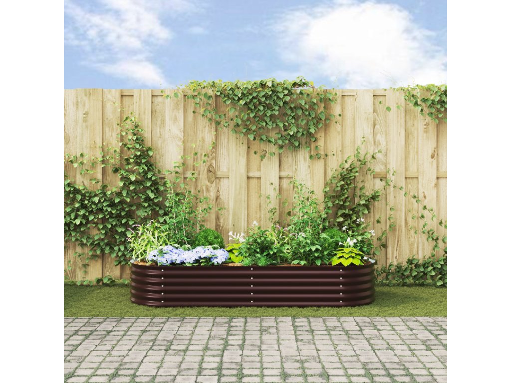 Tento moderní zahradní vyvýšený záhon má rozměry 240 cm x 80 cm x 44 cm a je z pozinkované oceli, takže je robustní a odolný. Stylové hnědé práškové lakování se hodí do každého venkovního prostoru a poskytuje prostor pro různé rostliny – prostě nutnost pro zahradníky.