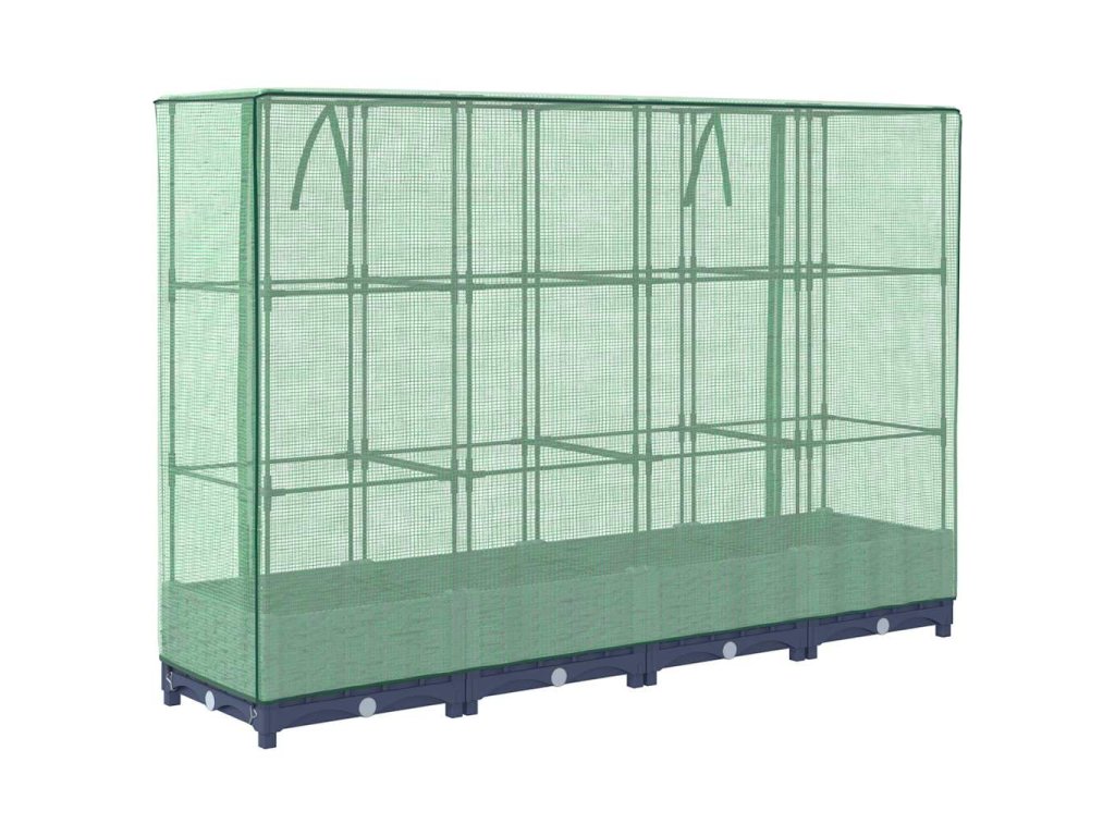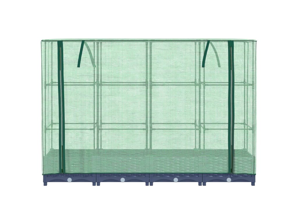 - Funkční kryt: Vyvýšený záhon je vybaven voděodolným polyethylenovým krytem, který chrání rostliny před extrémními teplotami a zároveň je chrání před hmyzem, ptáky a drobnými živočichy.