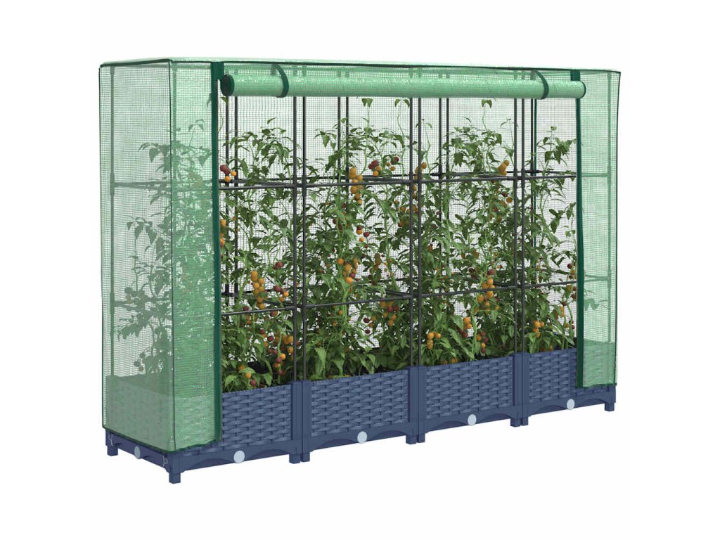 - Robustní konstrukce: Vyvýšený záhon vyrobený z polypropylenu má v horní části robustní rám ze železných trubek, který umožňuje rostlinám růst a popínat se po něm.