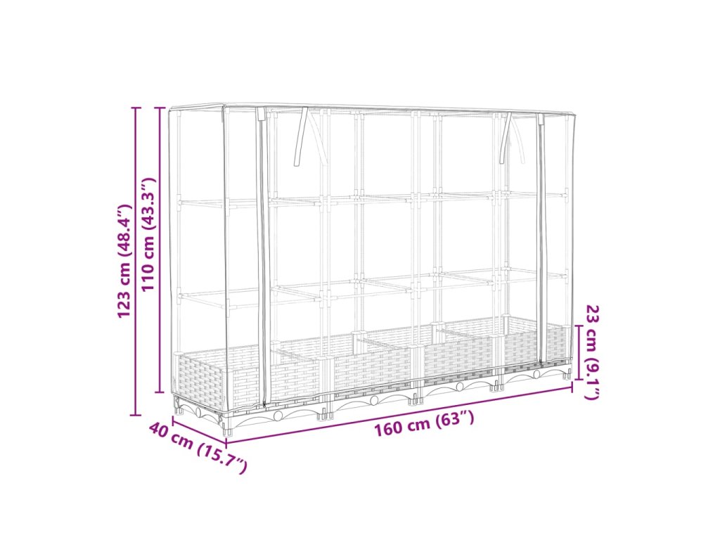 - Rozměry skleníku: 160 x 40 x 110 cm (D x Š x V)