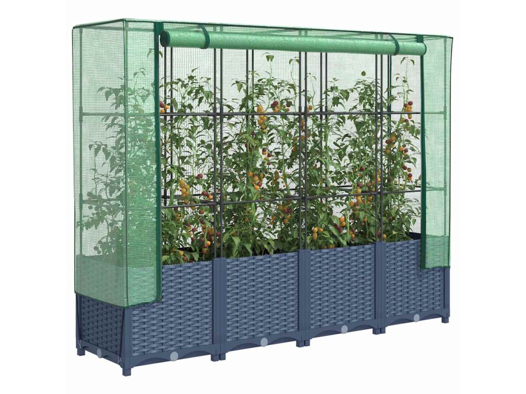 - Odolná konstrukce: Vyvýšený záhon, vyrobený z polypropylenu, má nahoře robustní rám z železných trubek, který umožňuje rostlinám růst a šplhat po něm.