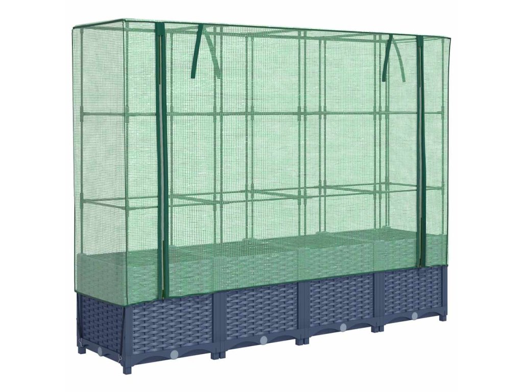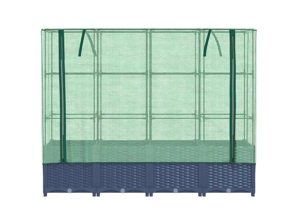 - Funkční kryt: Vyvýšený záhon je vybaven voděodolným polyethylenovým krytem, který chrání rostliny před extrémními teplotami a zároveň je chrání před hmyzem, ptáky a drobnými živočichy.
