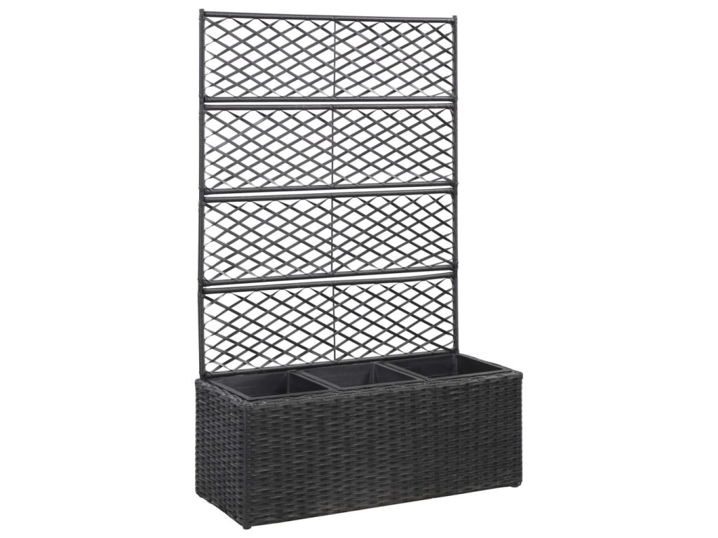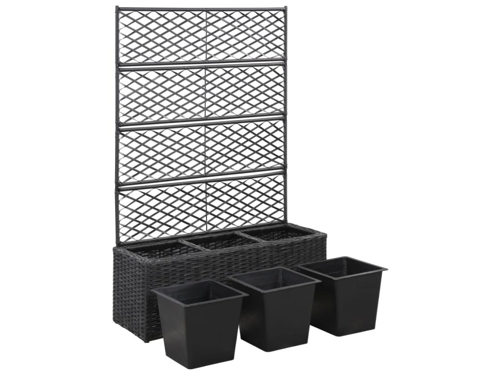 Tento polyratanový vyvýšený záhon se zabudovanou treláží obsahuje 3 vyjímatelné květináče a dodá vašemu venkovnímu bydlení nový šarm.