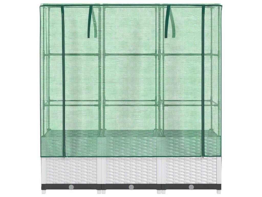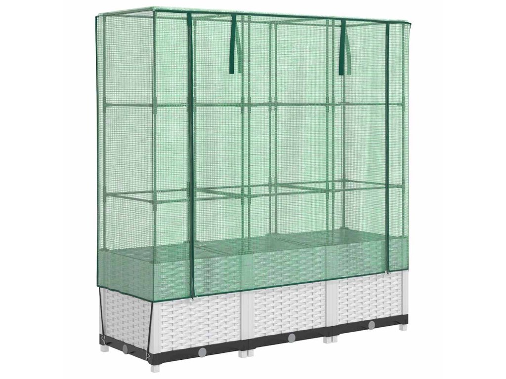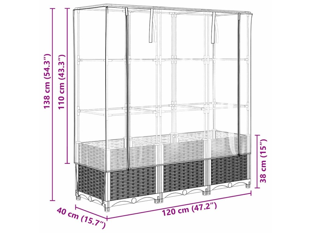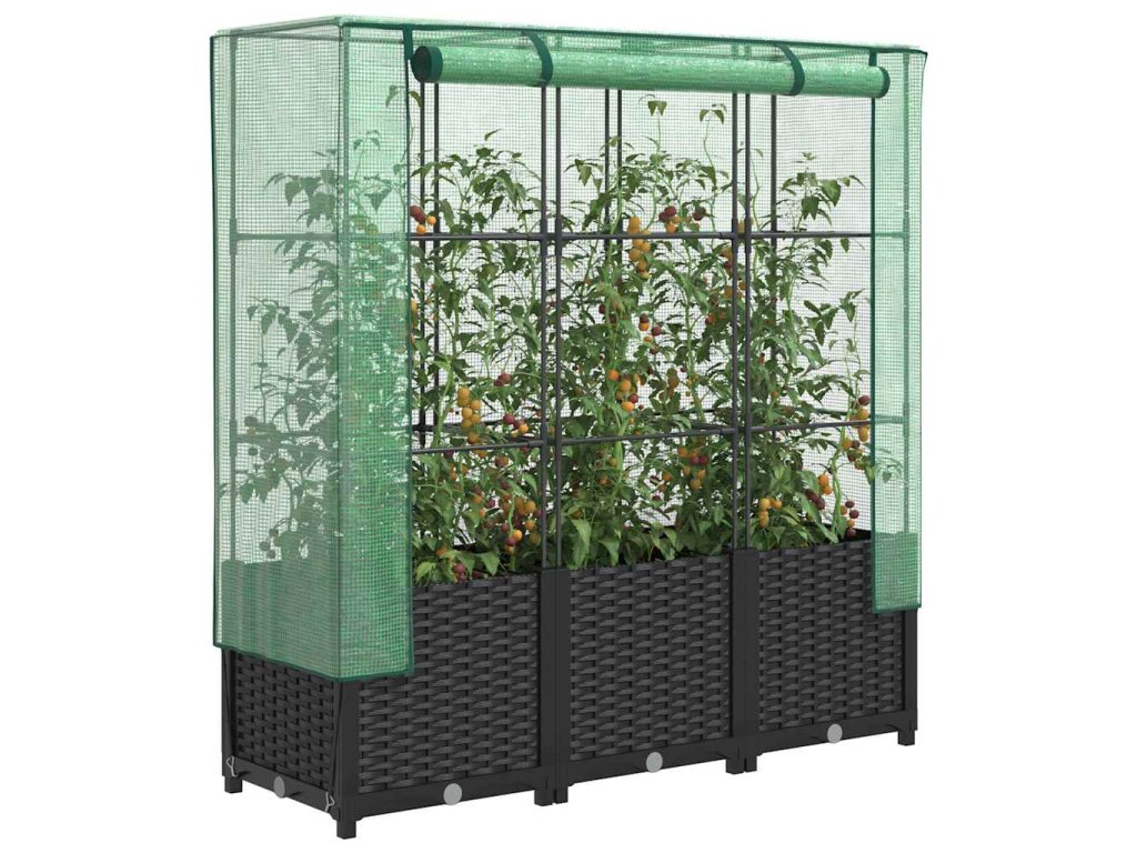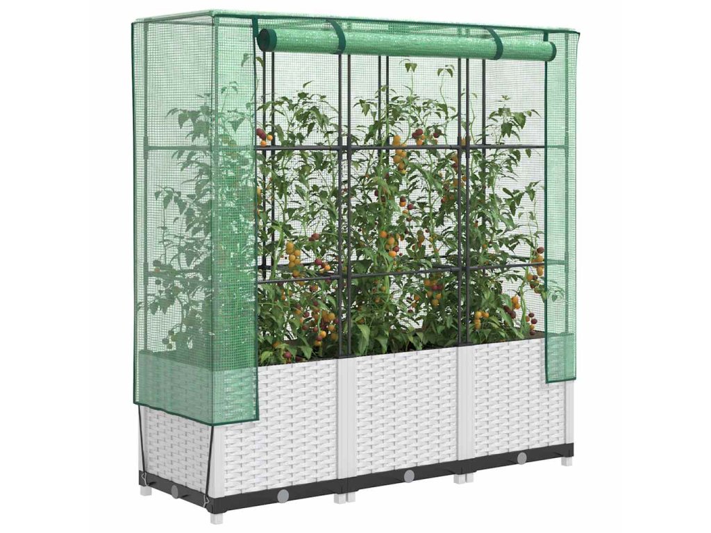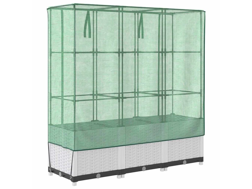 - Funkční kryt: Vyvýšený záhon je vybaven voděodolným polyethylenovým krytem, který chrání rostliny před extrémními teplotami a zároveň je chrání před hmyzem, ptáky a drobnými živočichy.